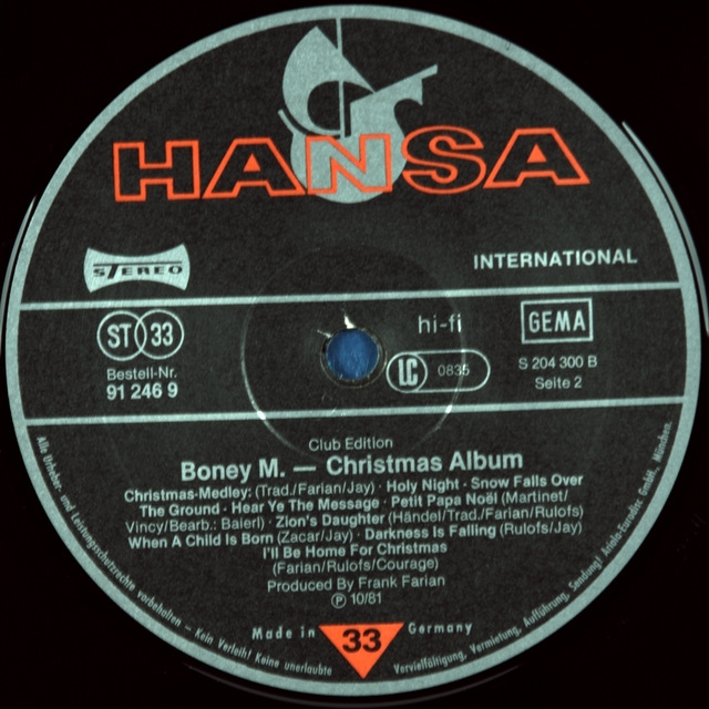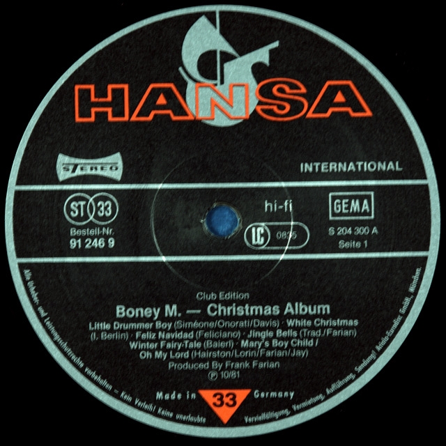 Альбом BONEY M-CHRISTMAS ALBUM-1981-Первый пресс GERMANY-HANSA-номер 912469