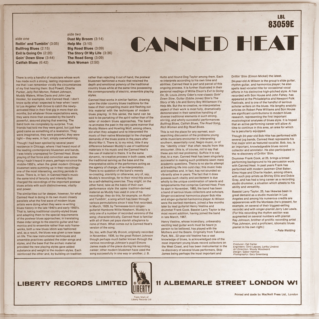 CANNED HEAT-CANNED HEAT-1967 ПЕРВЫЙ ПРЕСС(MONO) UK-LIBERTY номер LBL83059E. Мега редкий МОНО оригинал в топ состоянии.