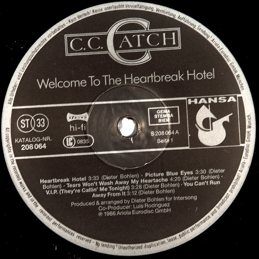 C.C. CATCH-WELCOME TO THE HEARTBREAK HOTEL-1986-ПЕРВЫЙ ПРЕСС GERMANY-HANSA номер 208064-630 Редкий альбом диско.
