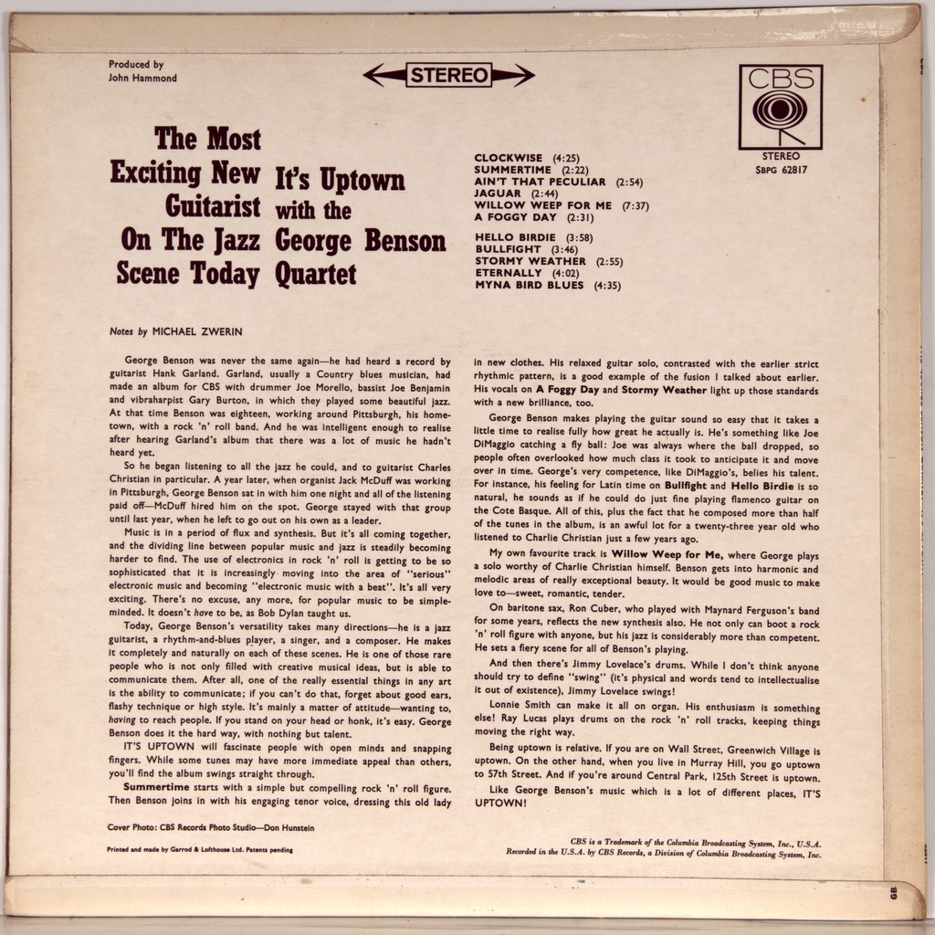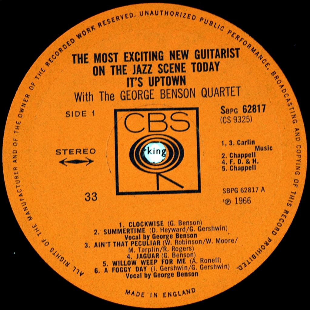 GEORGE BENSON QUARTET-IT'S UPTOWN-1966-ПЕРВЫЙ ПРЕСС UK-CBS- номер SBPG 62817 Очень редкий оригинал гения гитарного джаза.