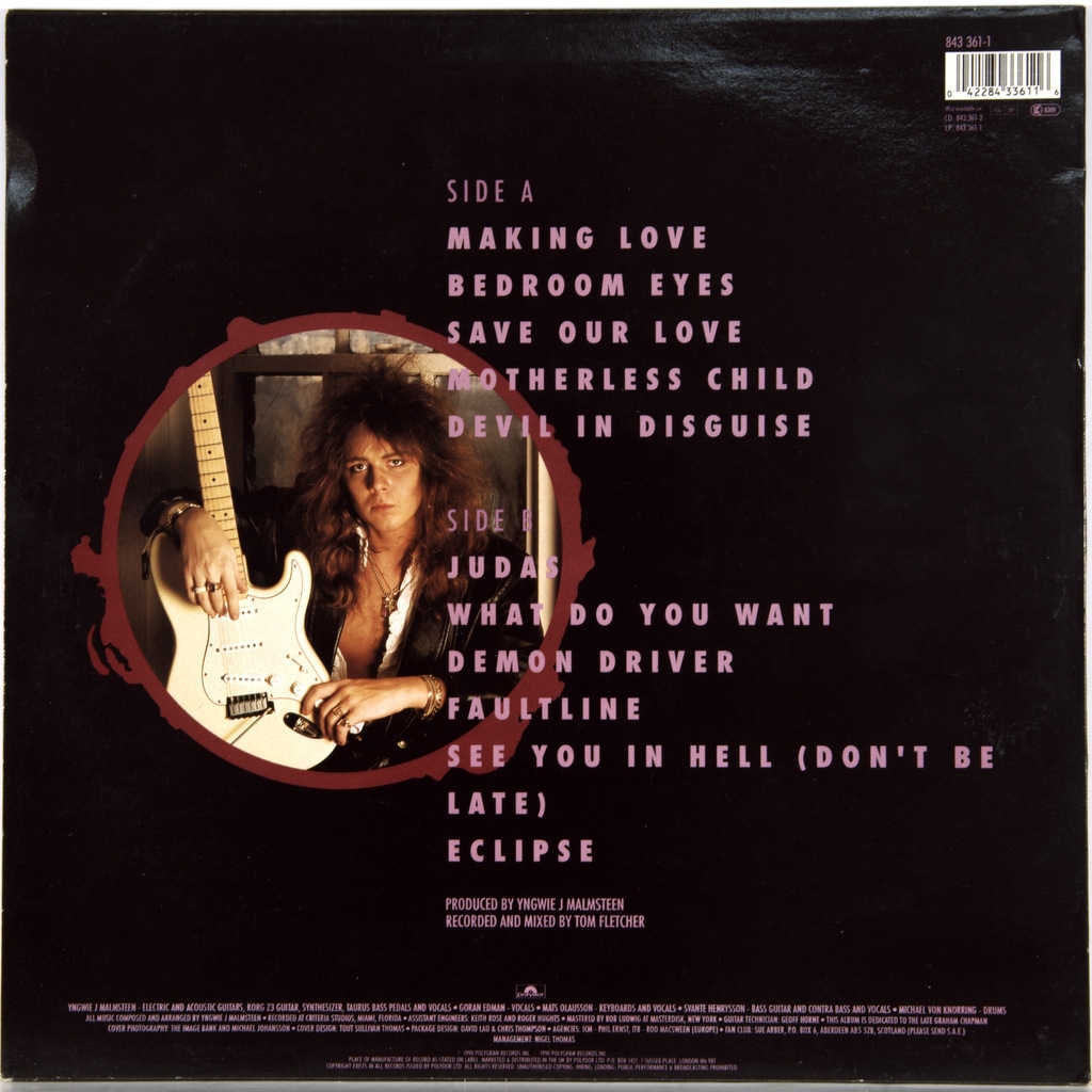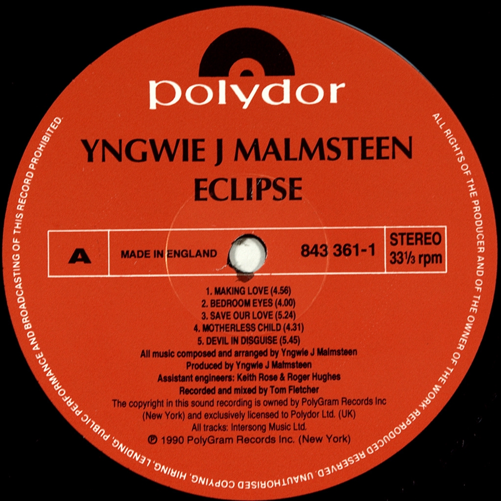 MALMSTEEN, YNGWIE-ECLIPSE-1990-ПЕРВЫЙ ПРЕСС UK-POLYDOR- номер 843361-1. Редкий английский оригинал.