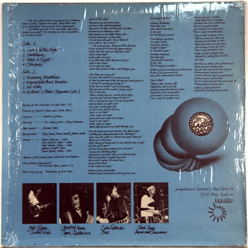 MANFRED MANN'S EARTH MAND-NIGHTINGALES & BOMBERS-1975-ПЕРВЫЙ ПРЕСС UK-BRONZE- ILPS 9337. Матрицы A-2U/B-2U , Стампера 1M/1GG (Мечта!) Очень редкий британский оригинал -вершина творчества группы. Nightingales & Bombers - шестой студийный альбом британской рок-группы Manfred Mann’s Earth Band, выпущенный 22 августа 1975 года на лейбле Bronze Records. Диск поднялся до #120 в Billboard 200 всех альбомов рок иерархии.