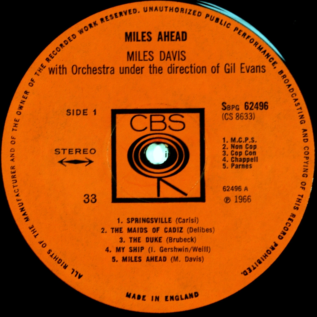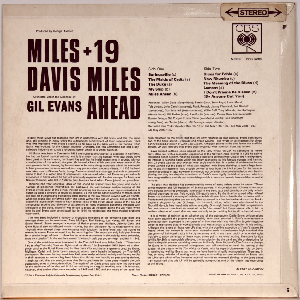 MILES DAVIS + 19 WITH ORCHESTRA UNDER THE DIRECTION OF GIL EVANS-MILES AHEAD (STEREO)-1966-ПЕРВЫЙ ПРЕСС UK-CBS- номер SBPG62496.