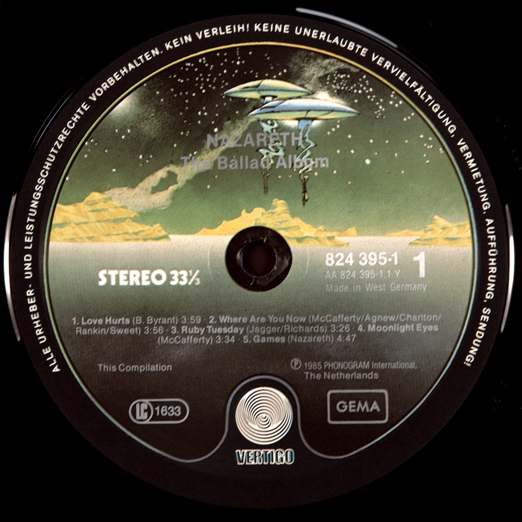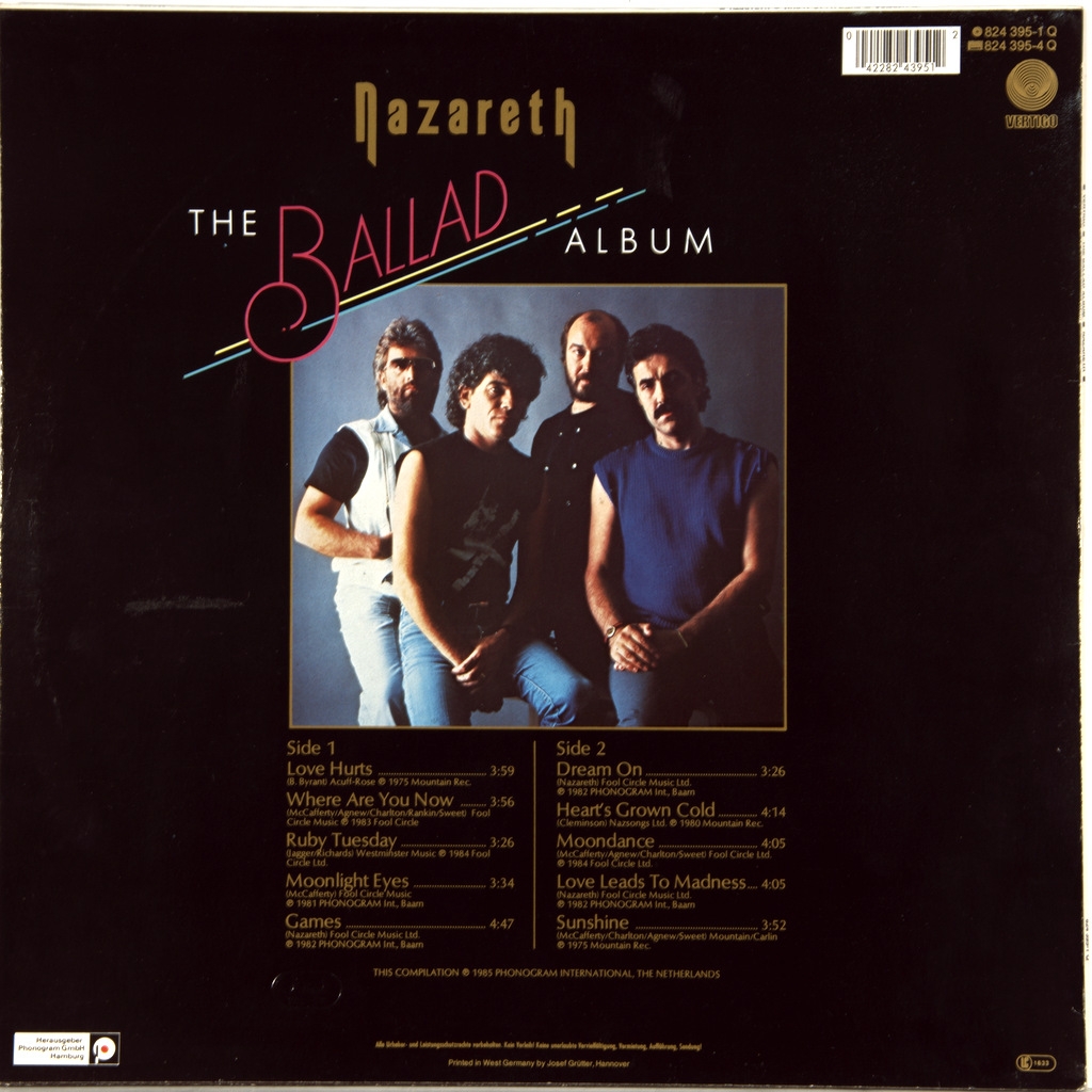 NAZARETH-BALLAD ALBUM-1985-ПЕРВЫЙ ПРЕСС GERMANY-VERTIGO- номер 824395-1 Редкий сборник баллад на коллекционном лейбле VERTIGO.