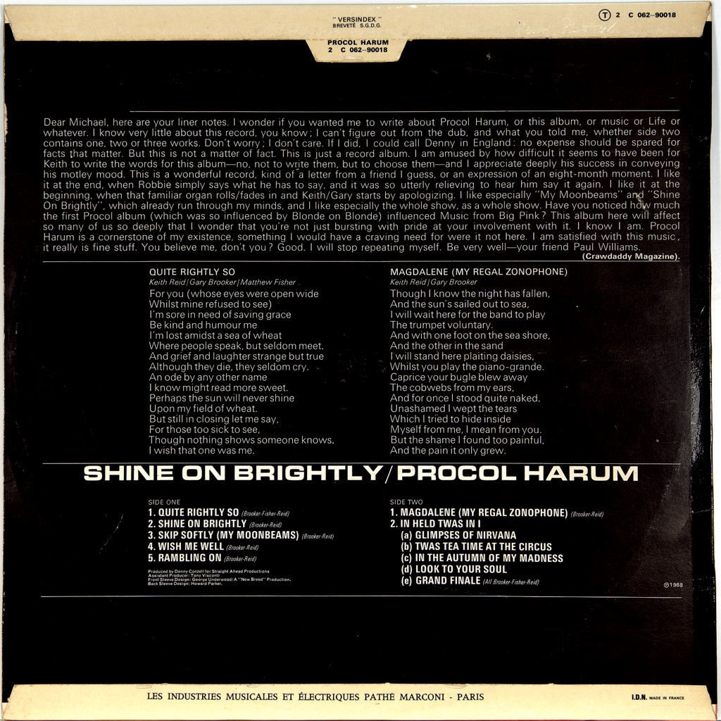 PROCOL HARUM-SHINE ON BRIGHTLY-1969-ПЕРВЫЙ ПРЕСС FRANCE-STATESIDE- номер 2C06290018 Редкий оригинал второго альбома.