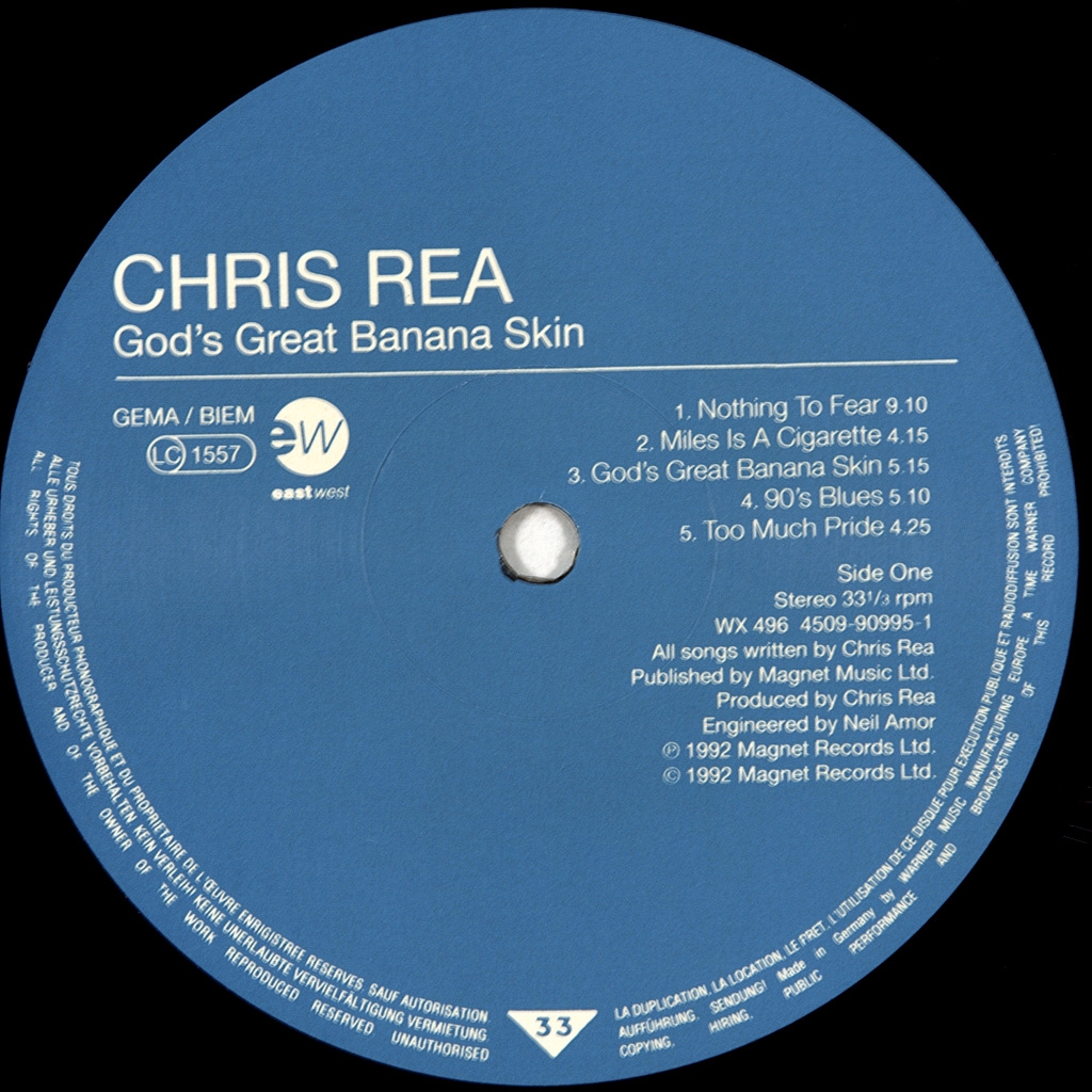 REA, CHRIS-GOOD'S GREAT BANANA SKIN-1992-ПЕРВЫЙ ПРЕСС GERMANY-EAST WEST- номер WX496 Очень редкий оригинал 90х.