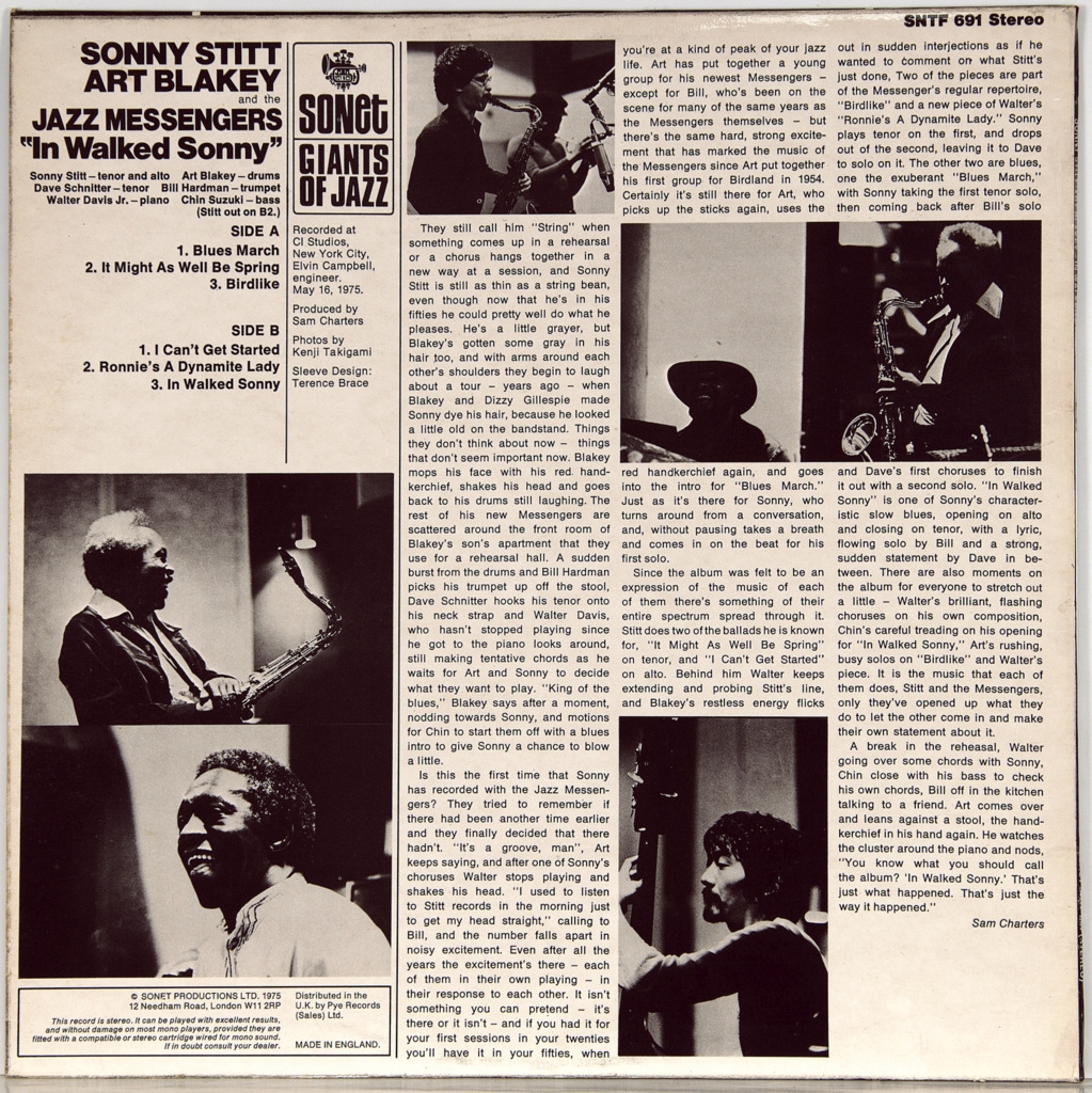 SONNY STITT WITH ART BLAKEY & THE JAZZ MESSENGERS-IN WALKED SONNY-1975-ПЕРВЫЙ ПРЕСС UK-SONET- номер SNTF691. Фундаментальная работа середины 70х двух монстров джаза.