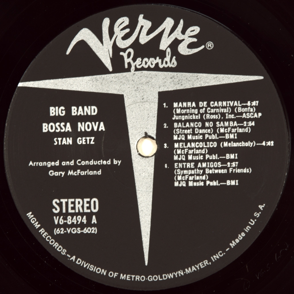 GETZ, STAN-BIG BAND BOSSA NOVA (STEREO)-1962-ПЕРВЫЙ ПРЕСС USA-VERVE номер V6-8494.