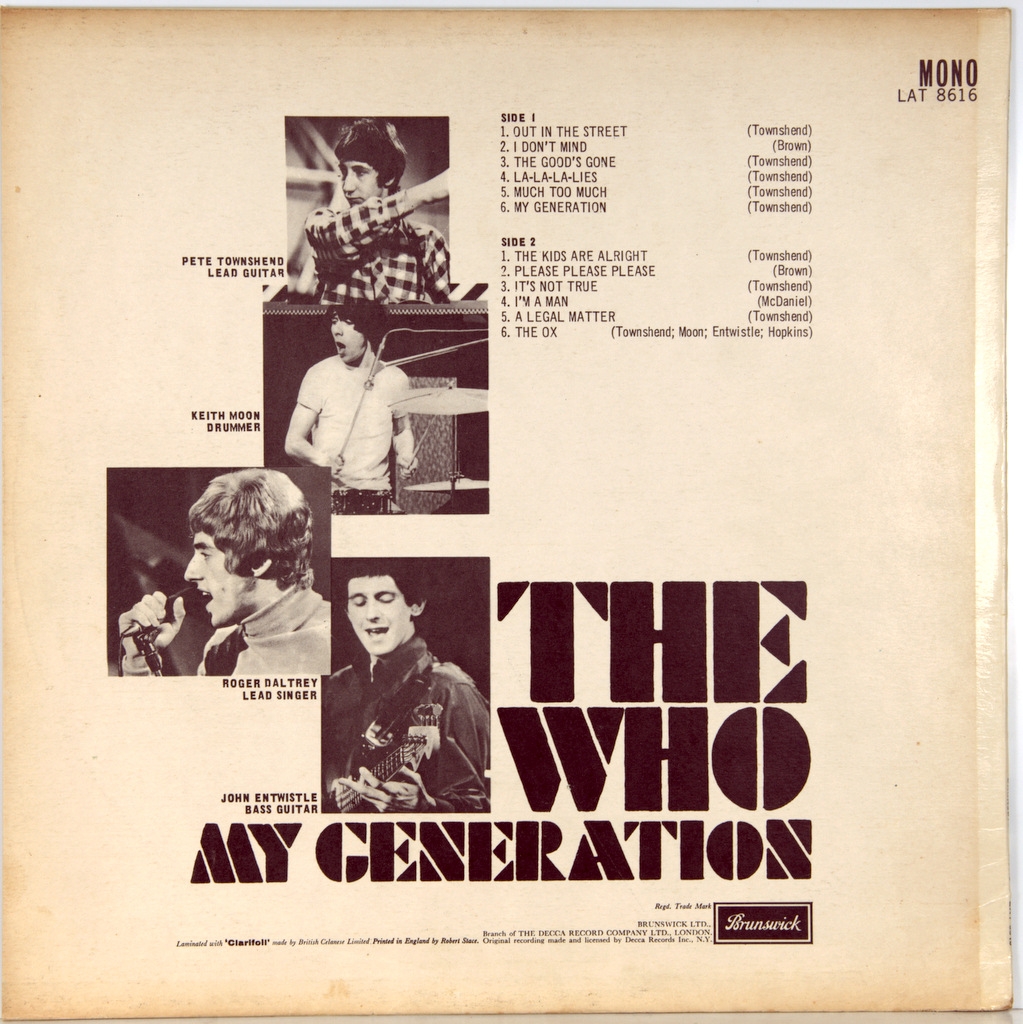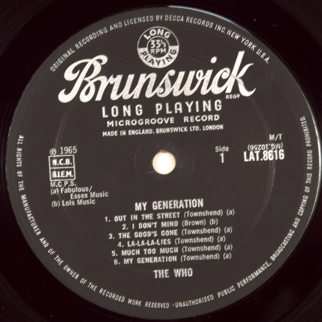 WHO-MY GENERATION-1965-ПЕРВЫЙ ПРЕСС UK-BRUNSWICK- номер LAT8616Редкий оригинал в архивном состоянии.