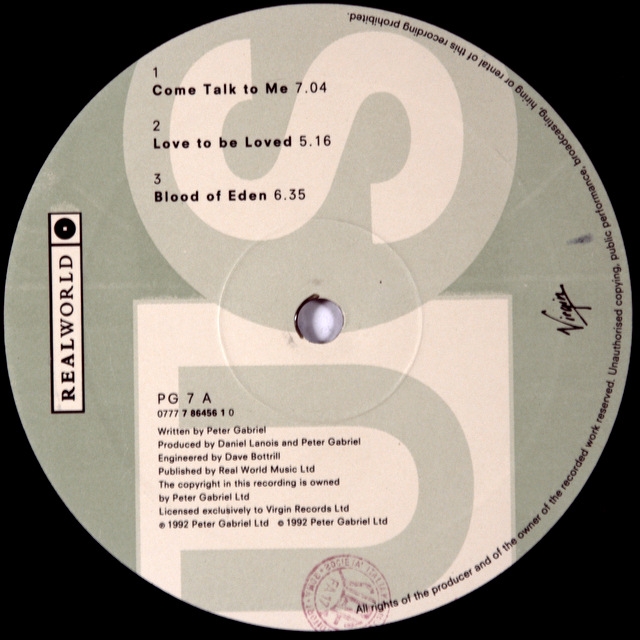Rare album GABRIEL, PETER-US-1992-First ITALY press VIRGIN number 0777 7 864 55 1 1, 213 143, PG 7