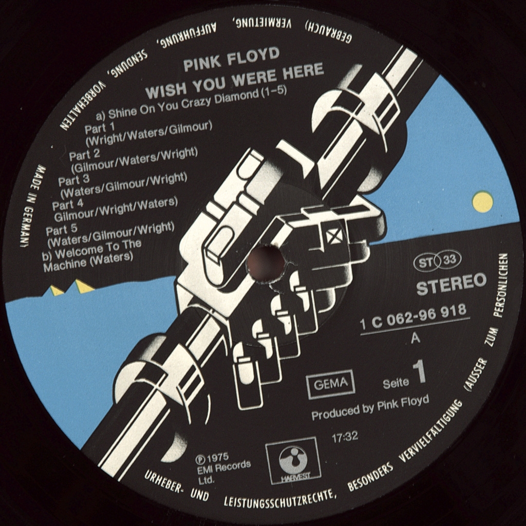 PINK FLOYD WISH YOU WERE HERE-1975-FIRST GERMANY PRESS-number HARVEST 1C062-96918