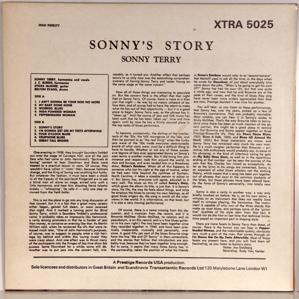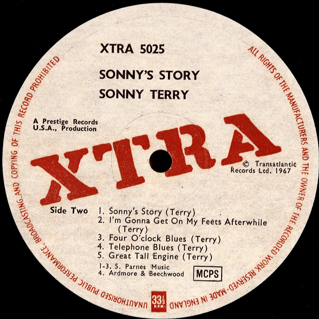 SONNY TERRY-SONNY'S STORY-1967-FIRST UK PRESS-XTRA number XTRA5025 Rare album grantovogo of blazovice.