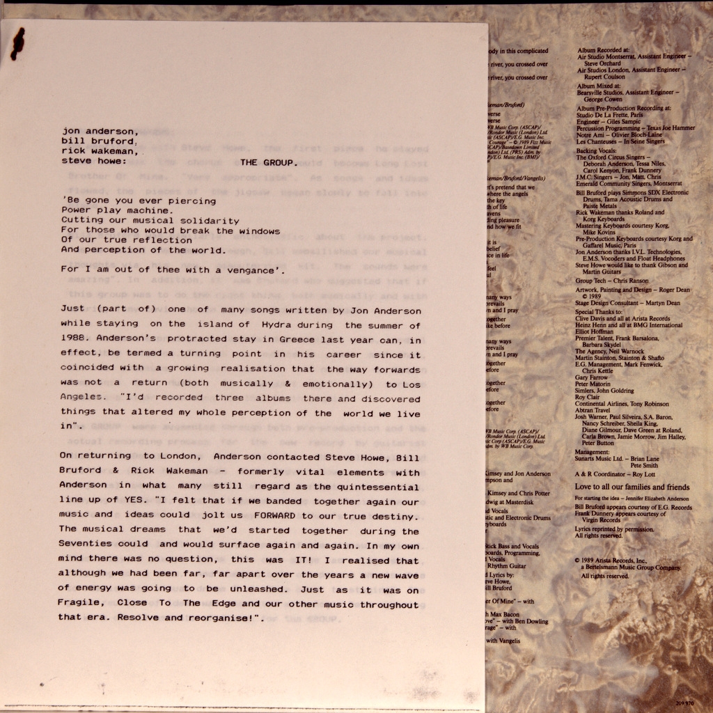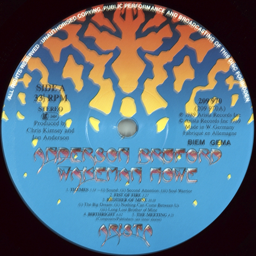 (YES) ANDERSON BRUFORD WAKEMAN HOWE-ANDERSON BRUFORD WAKEMAN HOWE-1989-FIRST PRESS UK/EU-GERMANY-ARISTA number 209970.