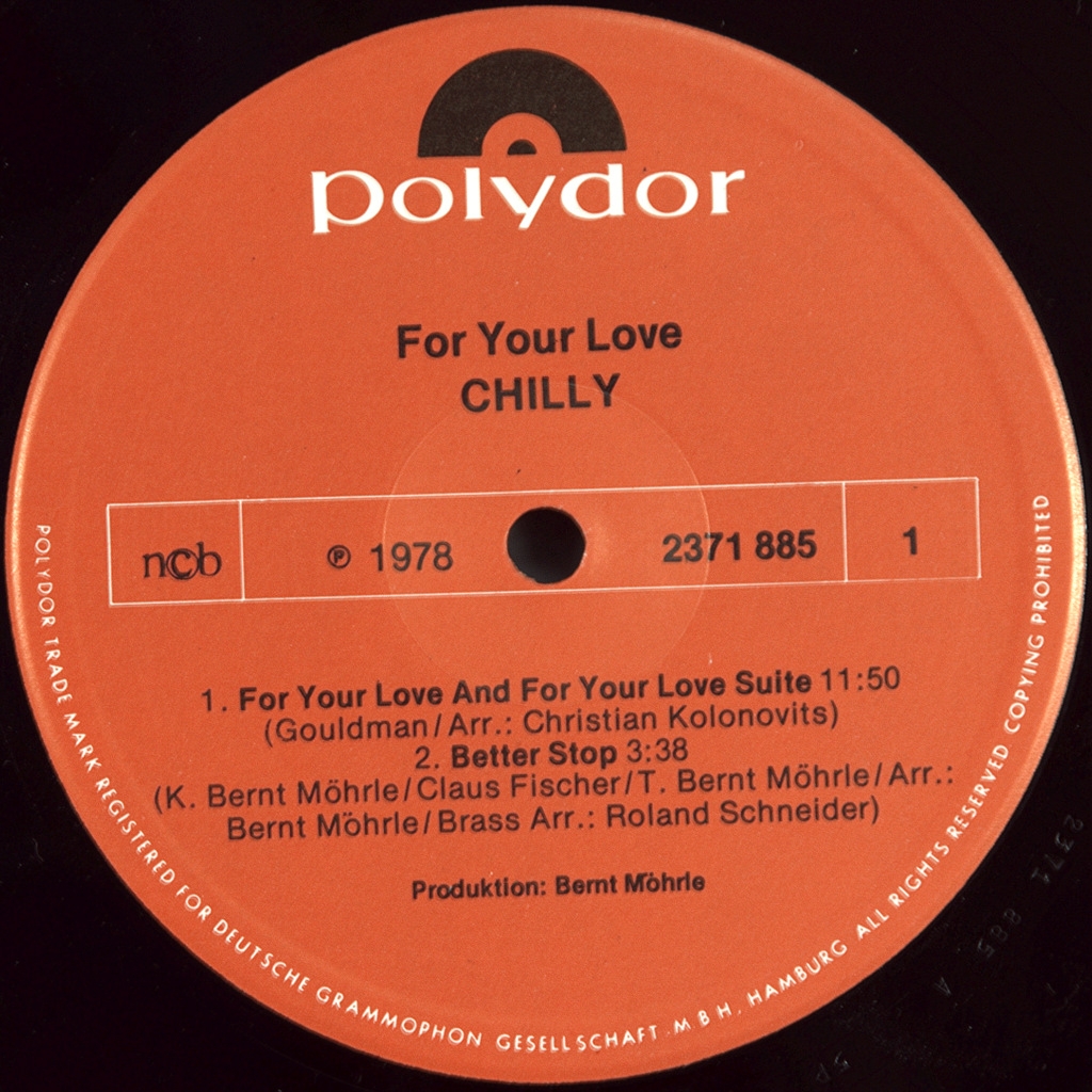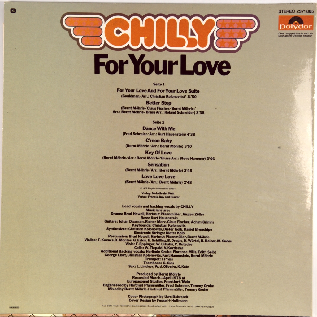 CHILLY-FOR YOUR LOVE-1978-SWEDEN FIRST PRESS-POLYDOR number 2371885. A very rare album disco.