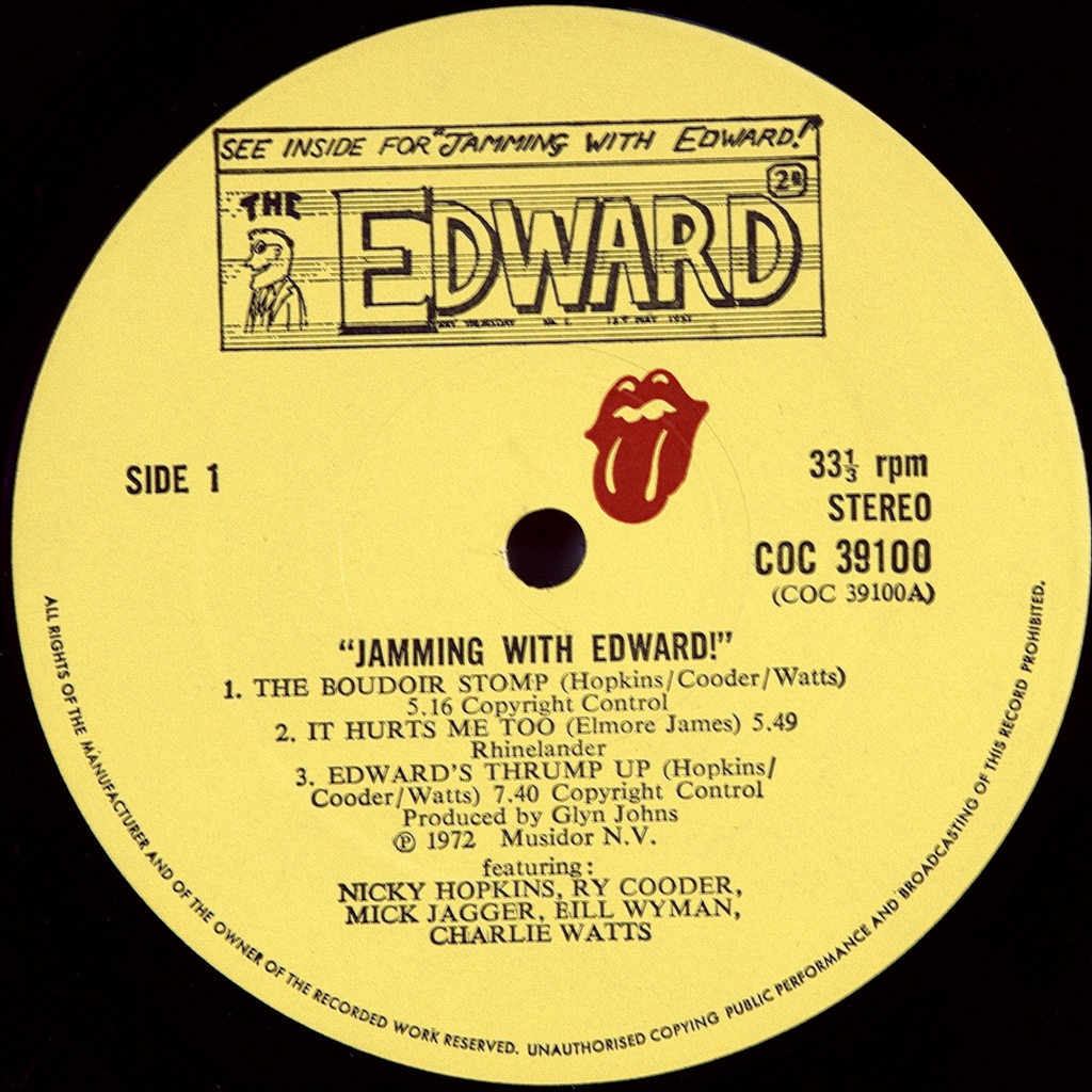 NICKY HOPKINS, RY COODER, MICK JAGGER, BILL WYMAN, CHARLIE WATTS-JAMMING WITH EDWARD!-1972-FIRST UK PRESS-ROLLING STONES number COC39100.Rare British original of the joint work of the ROLLING STONES with Blues friends.