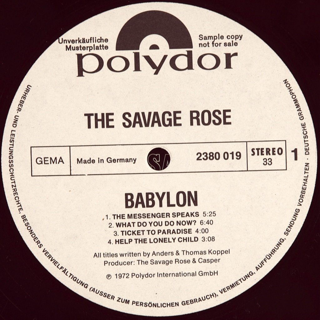 SAVAGE ROSE-BABYLON-1972-FIRST PRESS (PROMO)GERMANY-POLYDOR number 2380019. Rare original Danish prog group.