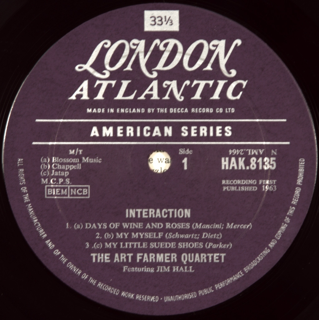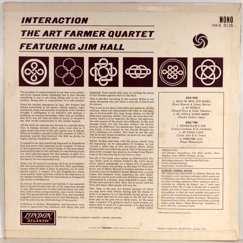 ART FARMER QUARTET FEATURING JIM HALL-INTERACTION-FIRST UK PRESS-LONDON number HAK8135.Famous album rare original edition.