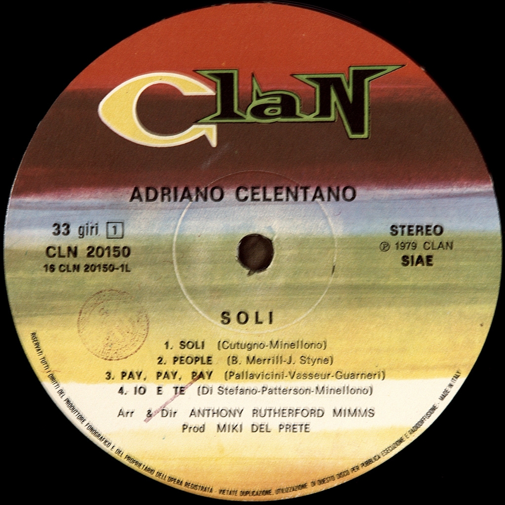 CELENTANO, ADRIANO-SOLI-1979-FIRST PRESS ITALY-CLAN room CLN20150. Rare Italian original. The album is considered a masterpiece of the work of the master Italian pop.