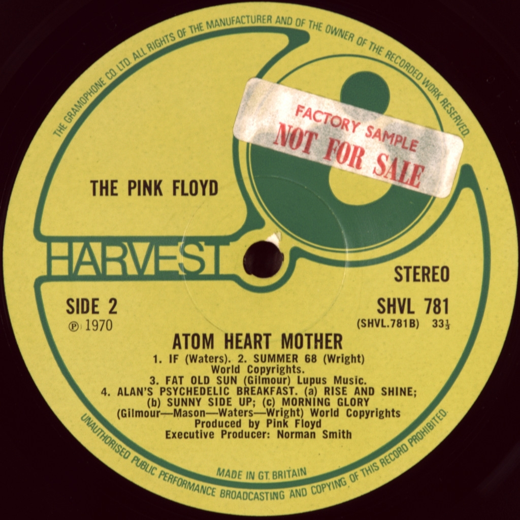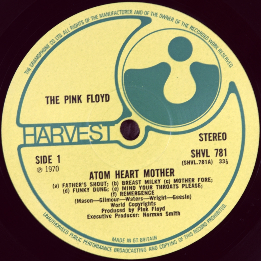 PINK FLOYD-ATOM HEART MOTHER-1970-FIRST PRESS(PROMO STICKER) UK-HARVEST number SHVL781. Of the matrix A-1G/B-1G Stamper 12GH/2GL (Very early!!!!)
