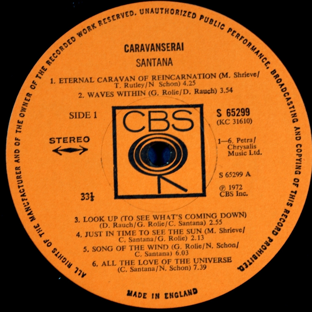 SANTANA-CARAVANSERAI-1972-FIRST UK PRESS-CBS number S65299.Rare British original fourth album, SANTANA.