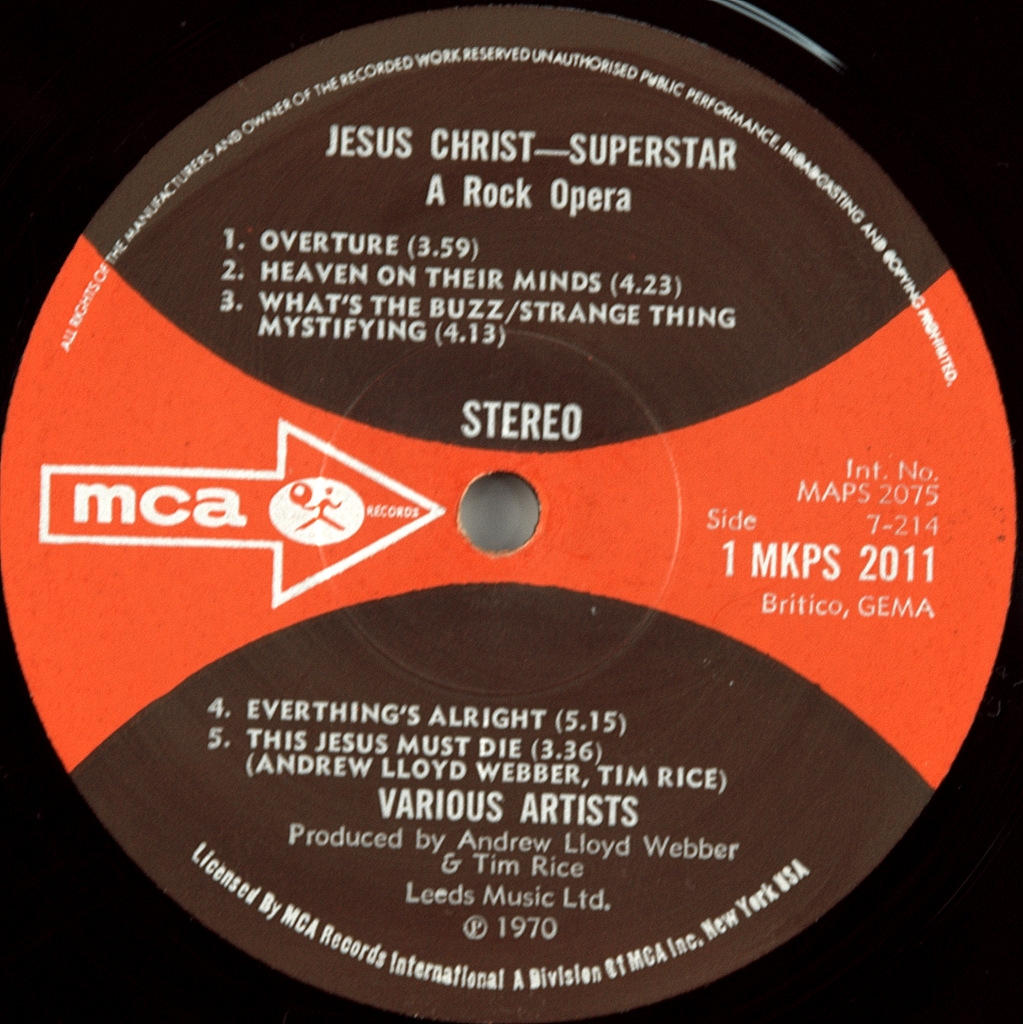 ANDREW LLOYD WEBBER & TIM RICE-JESUS CHRIST SUPERSTAR (2LP)-1970-UK FIRST PRESS-MCA MKPS2011/12. The first standard edition which was released in November 1970. Matrix number : 7-214-2 / 7-215 / 7-216-2/ 7-217.