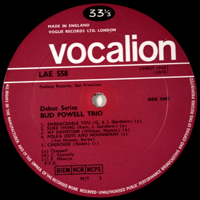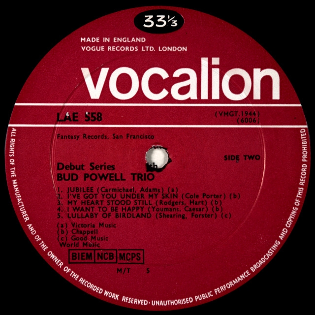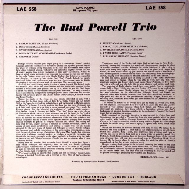 Album by jazz pianist BUD POWELL TRIO-POWELL/CHARLIE/ROACH-1962-UK Second press-VOCALION-number LAE558