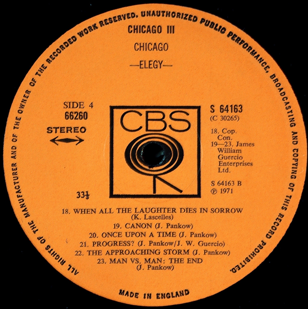 CHICAGO III (2 LP)-1971-FIRST UK PRESS-CBS number S64163. Rare third album giants of jazz-rock fully loaded (a large poster).