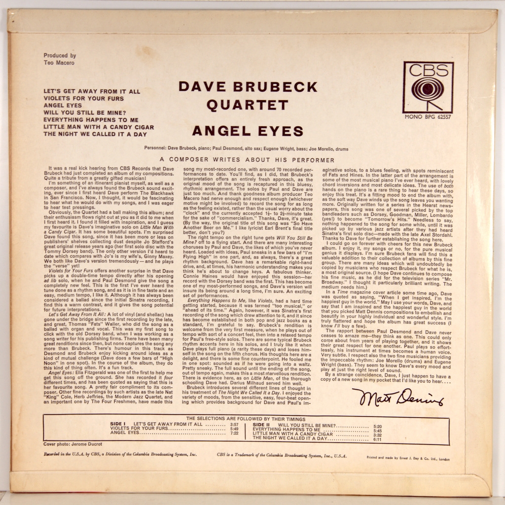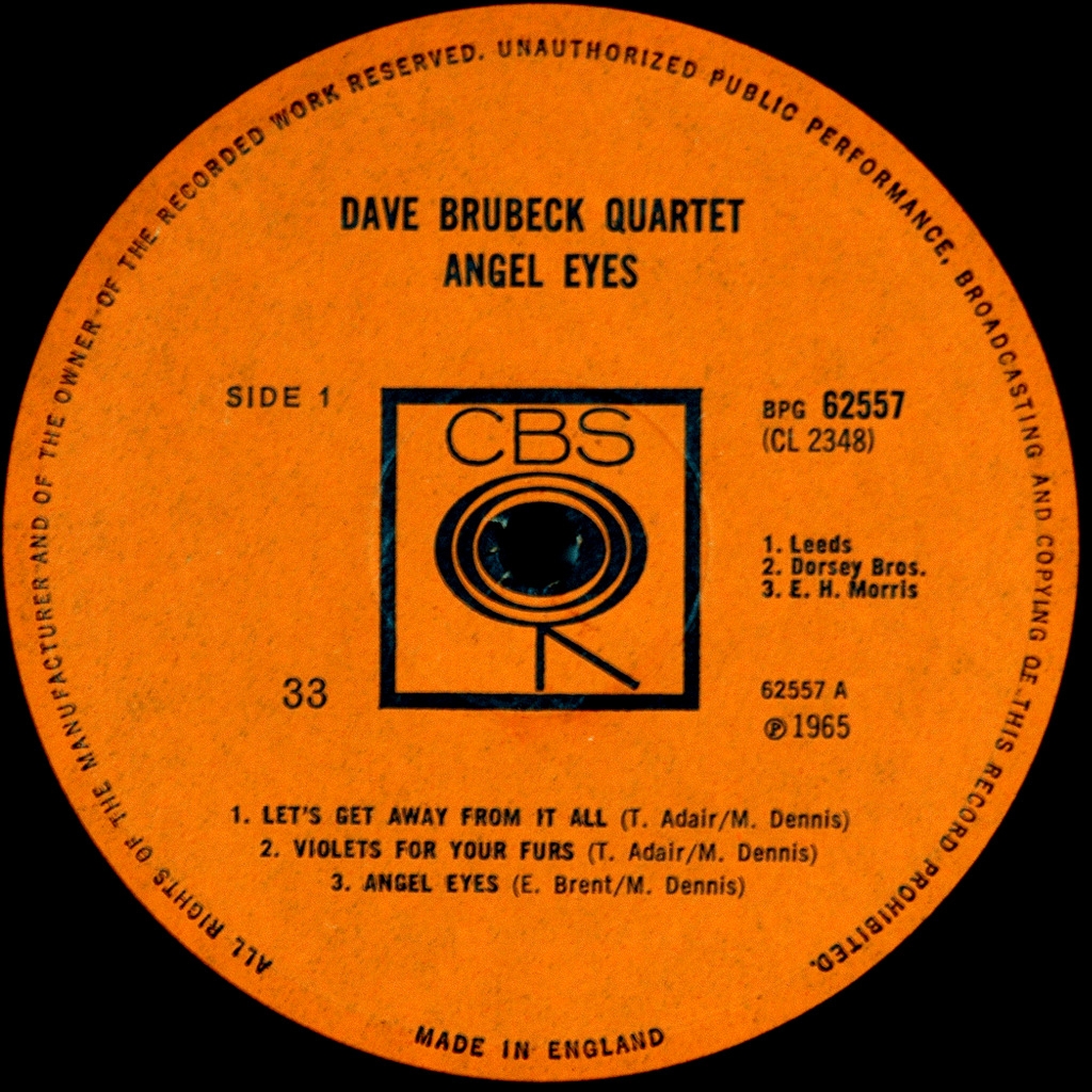 DAVE BRUBECK QUARTET-ANGEL EYES-1965-FIRST UK PRESS-CBS number BPG62557.