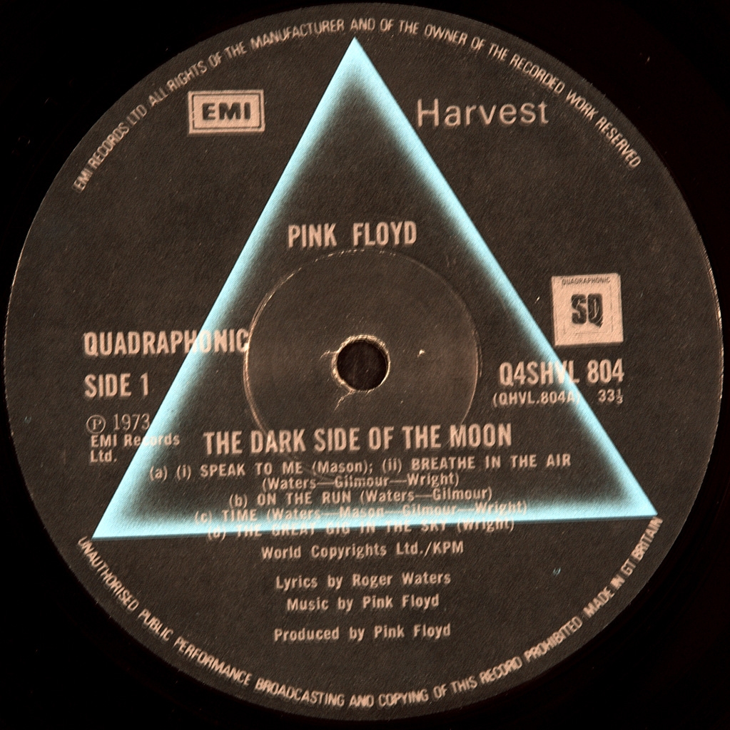PINK FLOYD-DARK SIDE OF THE MOON (QUADRAPHONIC)-1973-FIRST UK PRESS-HARVEST Q4SHVL804 Matrix A-3/B-1. Very rare British Quad original recording icons in rock music album DARK SIDE OF THE MOON.