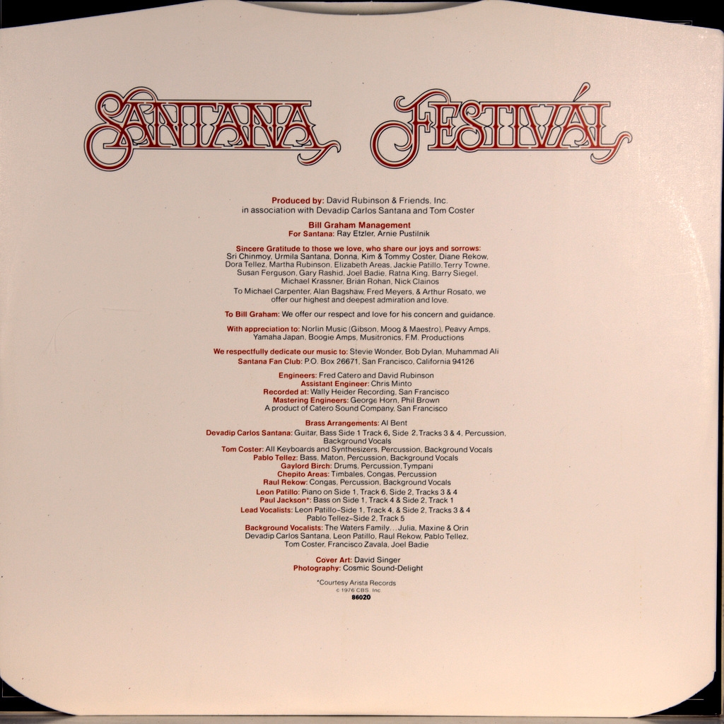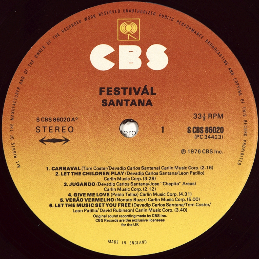 SANTANA-FESTIVAL-1976-FIRST UK PRESS-CBS S SBS86020. Rare British original.