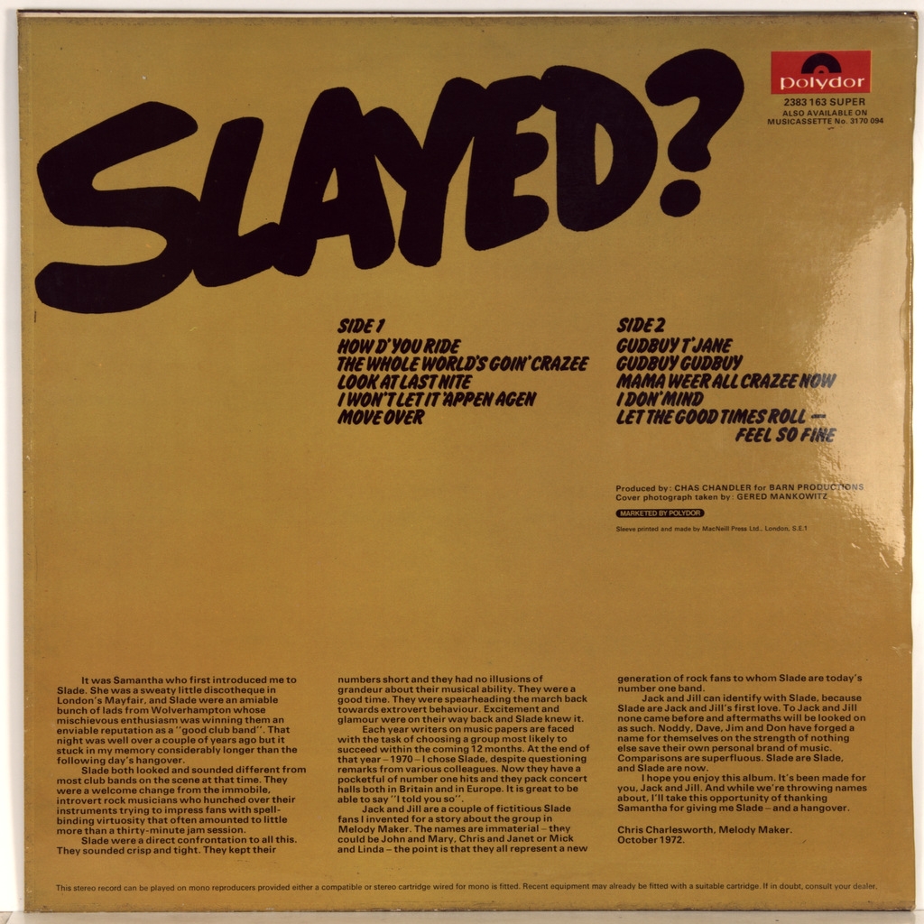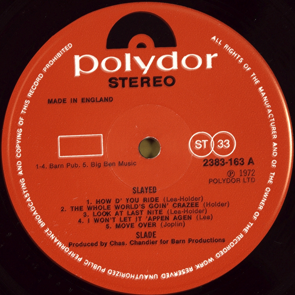 SLADE-SLAYED?-1972-FIRST UK PRESS-POLYDOR number 2383-163 of the Matrix A-1/B-1