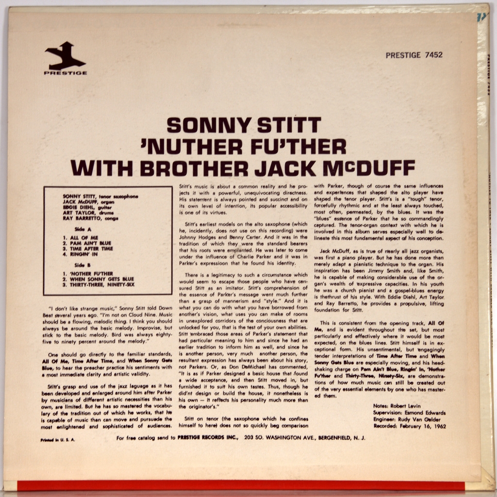 SONNY STITT WITH BROTHER JACK MCDUFF-'NOTHER FU THER-1966-FIRST PRESS USA-PRESTIGE - number PR7452 Rare original at a very prestigious jazz label.