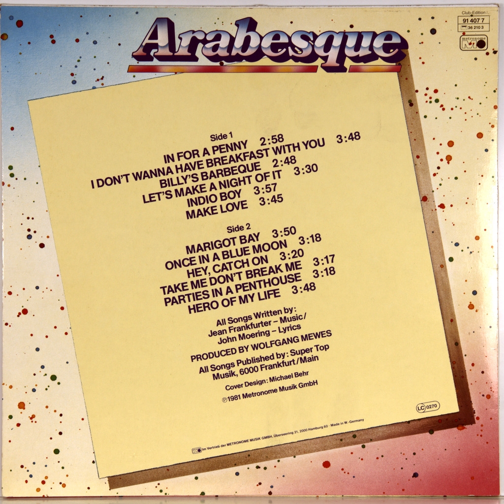 Lot 270ARABESQUE-ARABESQUE-1981-FIRST PRESS GERMANY-METRONOME-NMINT/NMINT