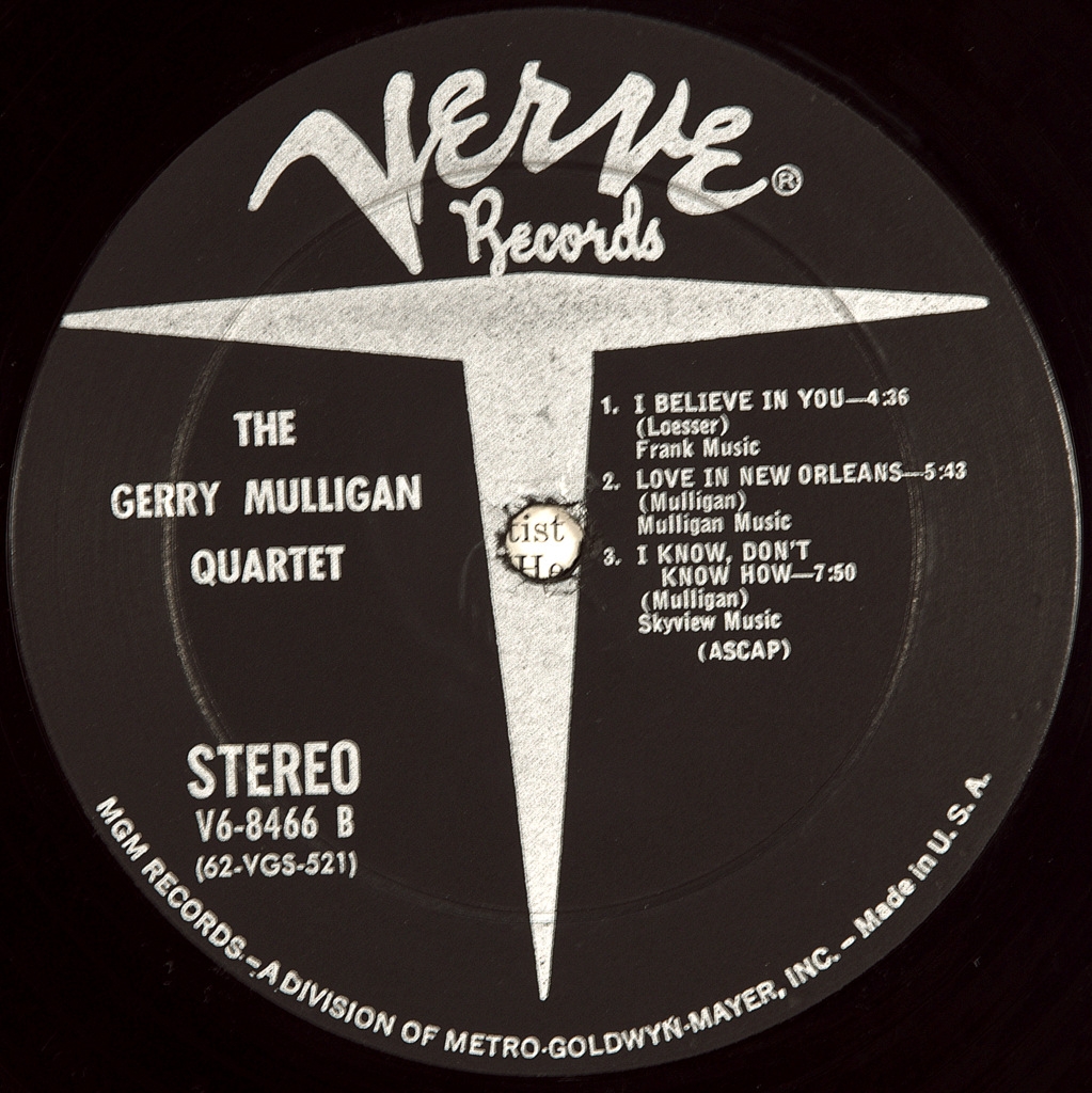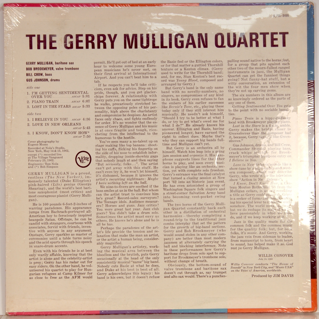 GERRY MULLIGAN QUARTET-GERRY MULLIGAN QUARTET-1962-FIRST PRESS USA- VERVE V6-8466. Rare STEREO original jazz giants.