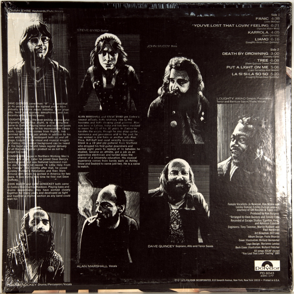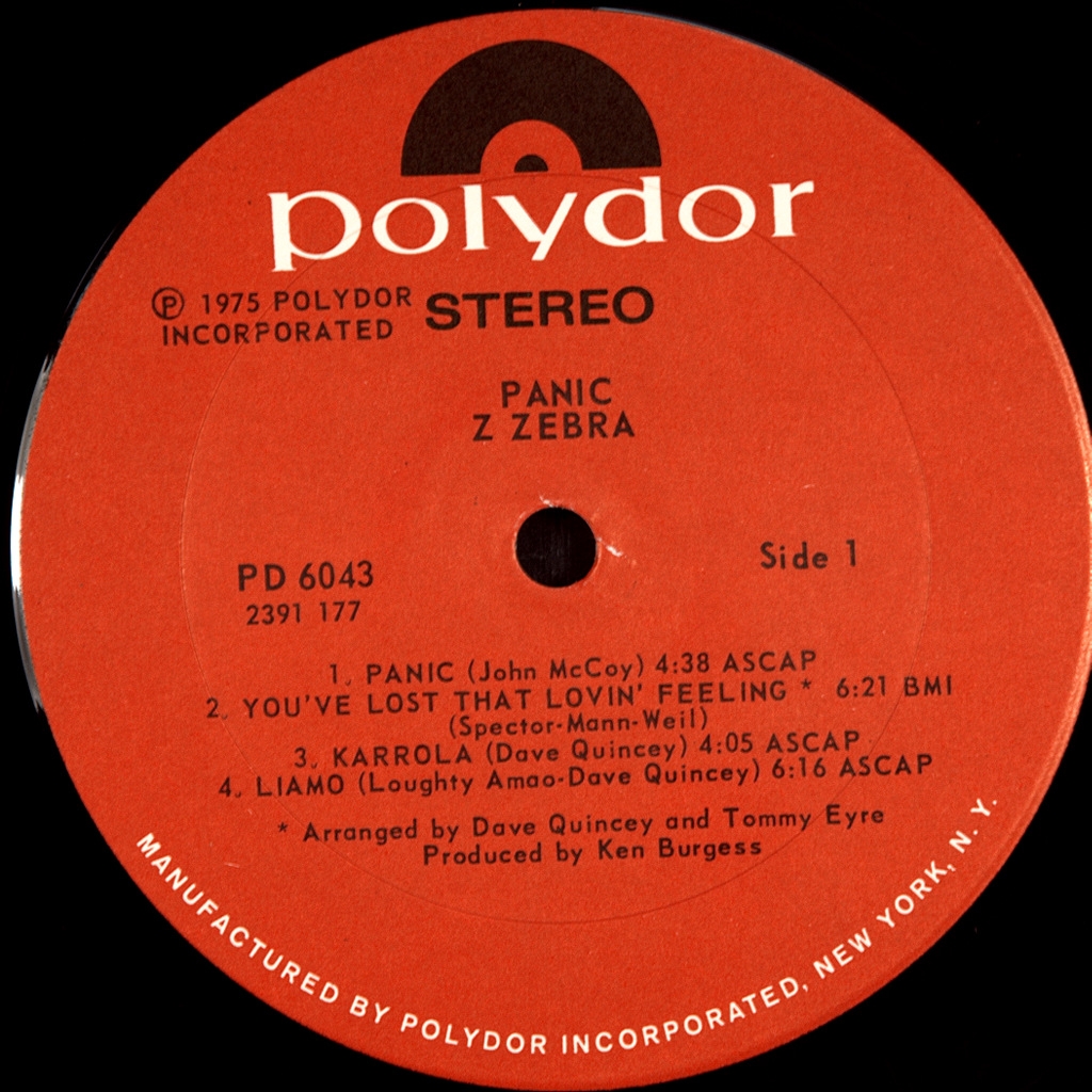 ZZEBRA-PANIC-1975-FIRST PRESS USA-POLYDOR -PD6043. Very rare American original. Supergroup was founded by members of groups "IF" and "OSIBISA". In the style of combined prog, jazz, funk.
