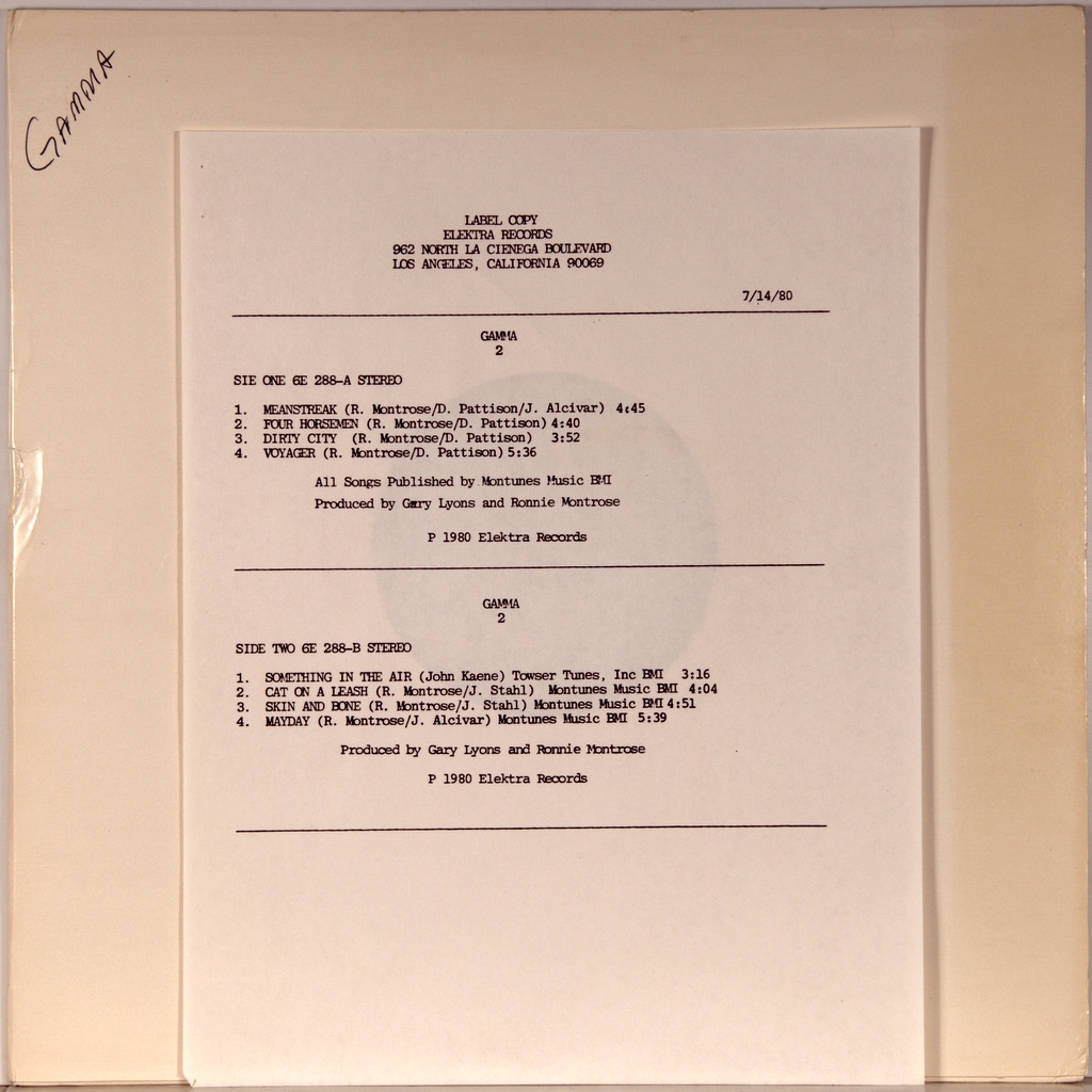 GAMMA-GAMMA 2(PROMO)-1980-TEST DRIVE USA- ELEKTRA 6E-288. Rare American promo original famous guitarist RONNIE MONTROSE who founded the group GAMMA.