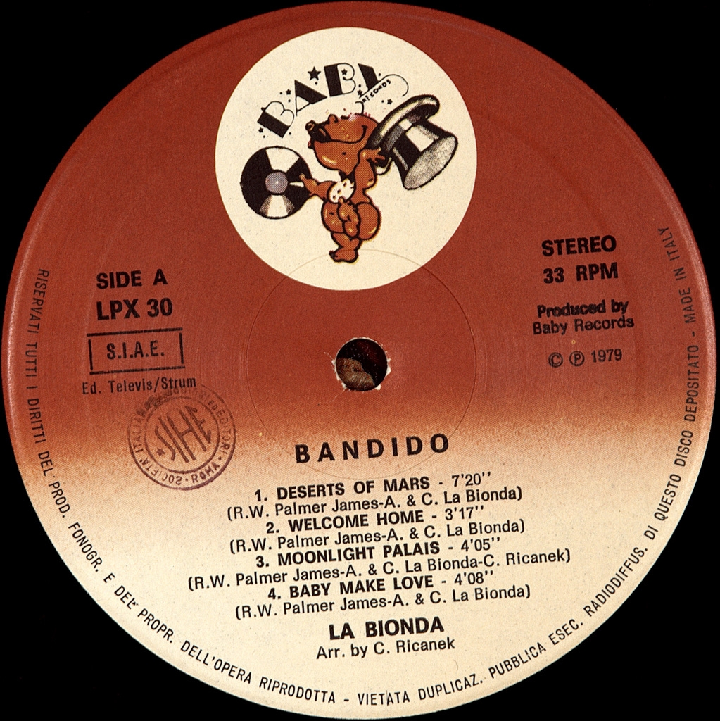 LA BIONDA-BANDIDO-1979-FIRST PRESS ITALY-BABY - LPX30. Rare original significant album in the disco music of the 70s.