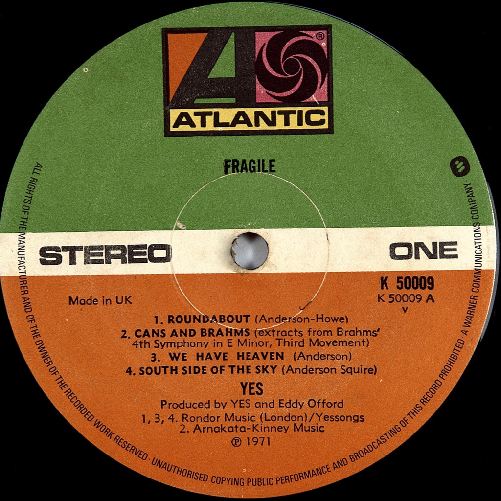 YES-FRAGILE-1971-ORIGINAL 1976 UK PRESS-ATLANTIC -K50009. Rare British edition of the iconic prog album.