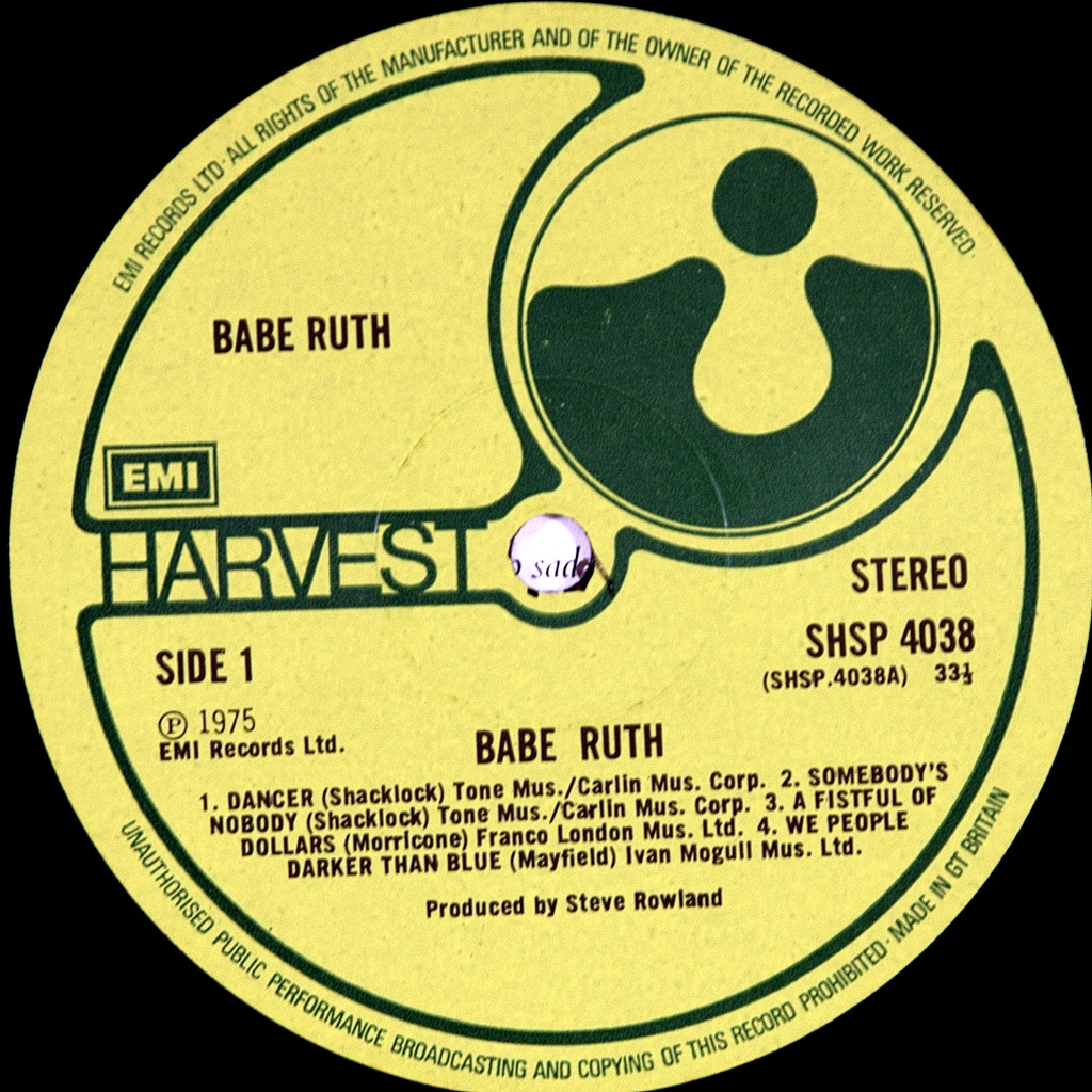 BABE RUTH-BABE RUTH-1975-FIRST UK PRESS-HARVEST - SHSP4038. Rare British original. British rock band originally known as Shacklock in 1971, then renamed to Babe Ruth. Formed in 1971, disbanded in 1976.