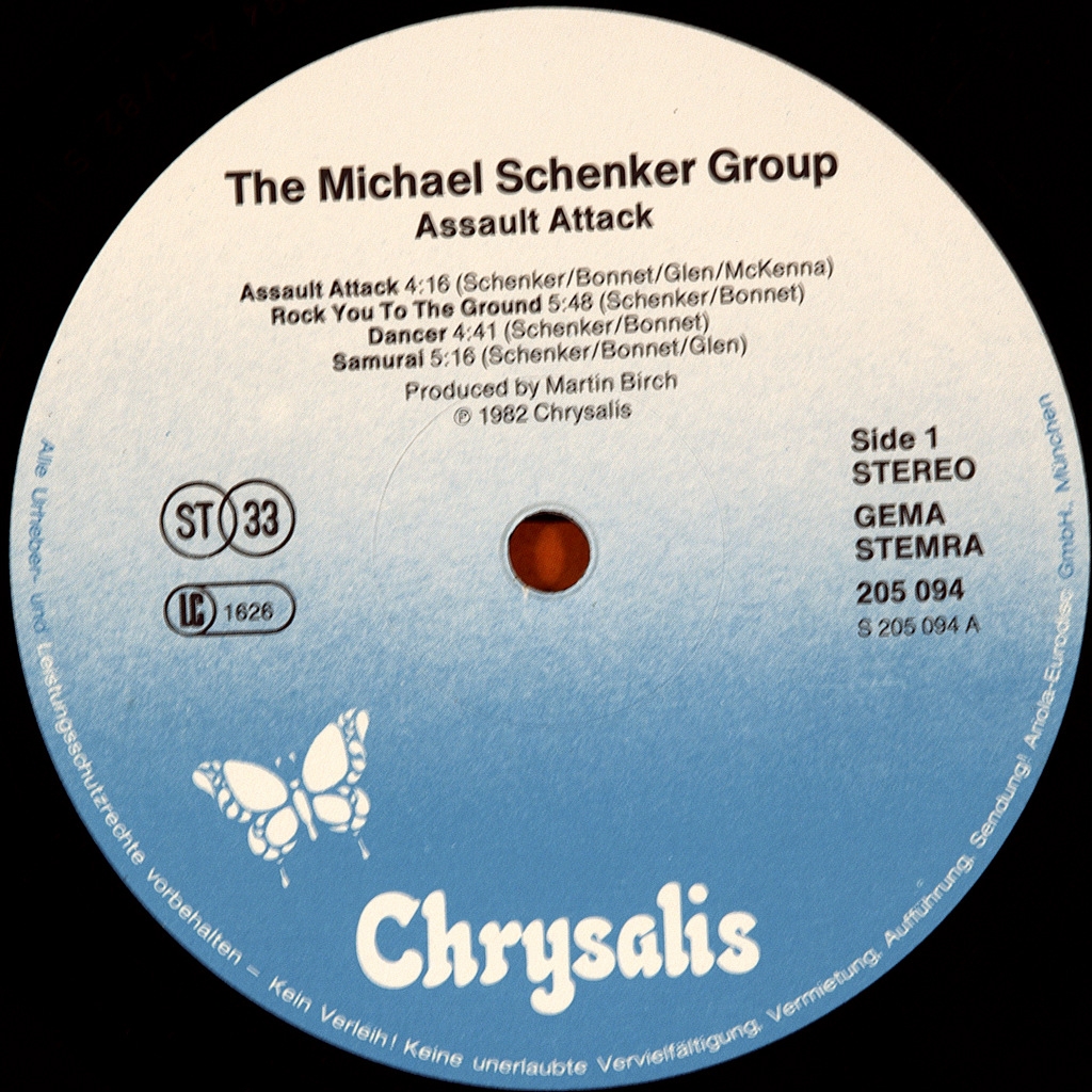 MICHAEL SCHENKER GROUP – ASSAULT ATTACK-1982-FIRST PRESS GERMANY-CHRYSALIS 205094. Rare original third Studio album, The Michael Schenker Group , and the only album featuring former Rainbow vocalist Graham Bonnet. In 2005, Assault Attack was ranked 481-e a place in the book of Rock Hard magazine 500 greatest rock metal albums of all time .
