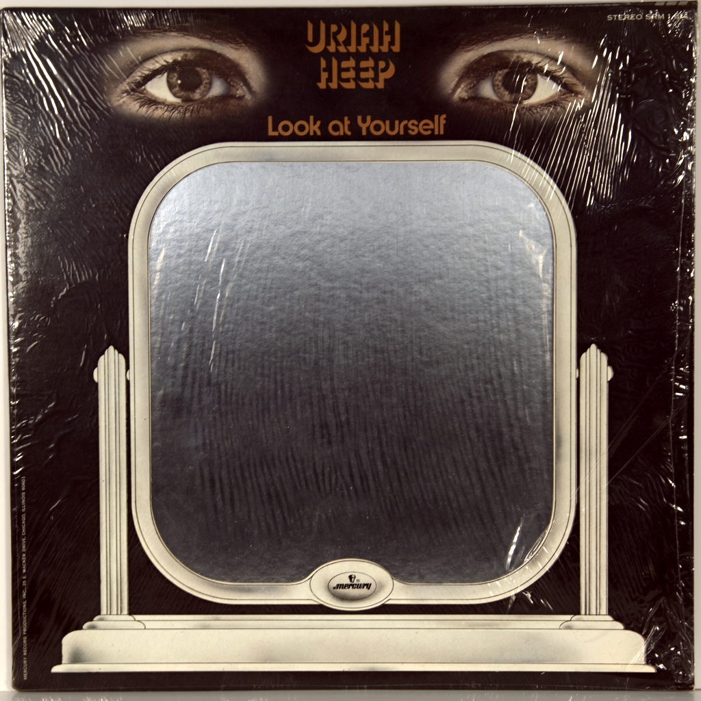 URIAH HEEP-LOOK AT YOURSELF-1971-GERMAN ORIGIN 1975 USA PRESS-MERCURY-SRM1-614. Very rare edition of the iconic album.Look at Yourself is the third Studio album by British rock band Uriah Heep recorded by the band with producer Gerry Bron in Lansdown Studios July 1971 and released in October 1971 record company Bronze Records, in the USA the album was released on Mercury Records. The disc rose to #39 on the UK Albums Chart and to #93 on the Billboard 200, Title track was released as a single in the US, UK and few European countries in 1971. In 1973, in the USA the single was released live version of "July Morning". The original version of the cover provided for the slit and "the mirror" from the foil in which looking could see my distorted image.
