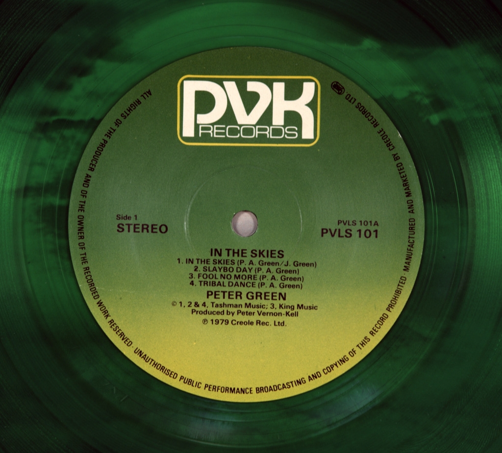 GREEN, PETER-IN THE SKIES (GREEN VINYL)-1979-FIRST UK PRESS-PVK- PVLS101. Rare British original master of Blues rock. In the Skies - the second solo album by British Blues rock musician Peter Green (founder of Fleetwood Mac).