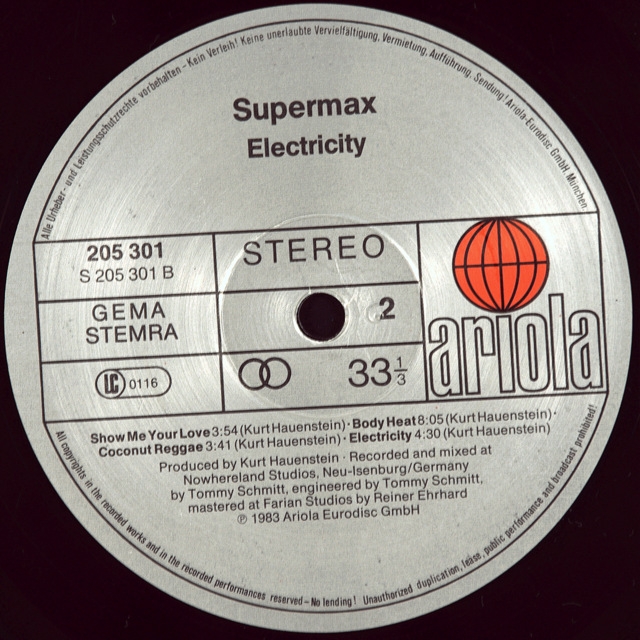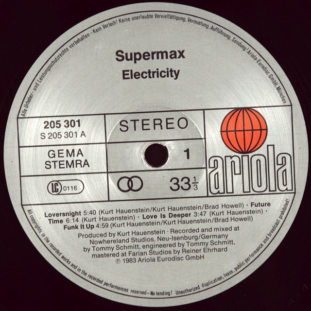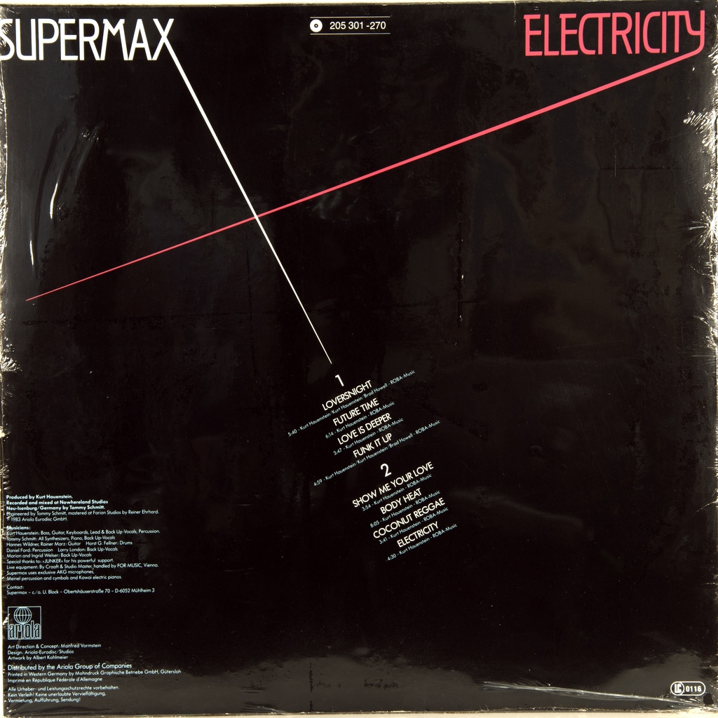 SUPERMAX-ELECTRICITY-1983-First GERMANY press-ARIOLA - 205301. Mega rare original cult album.