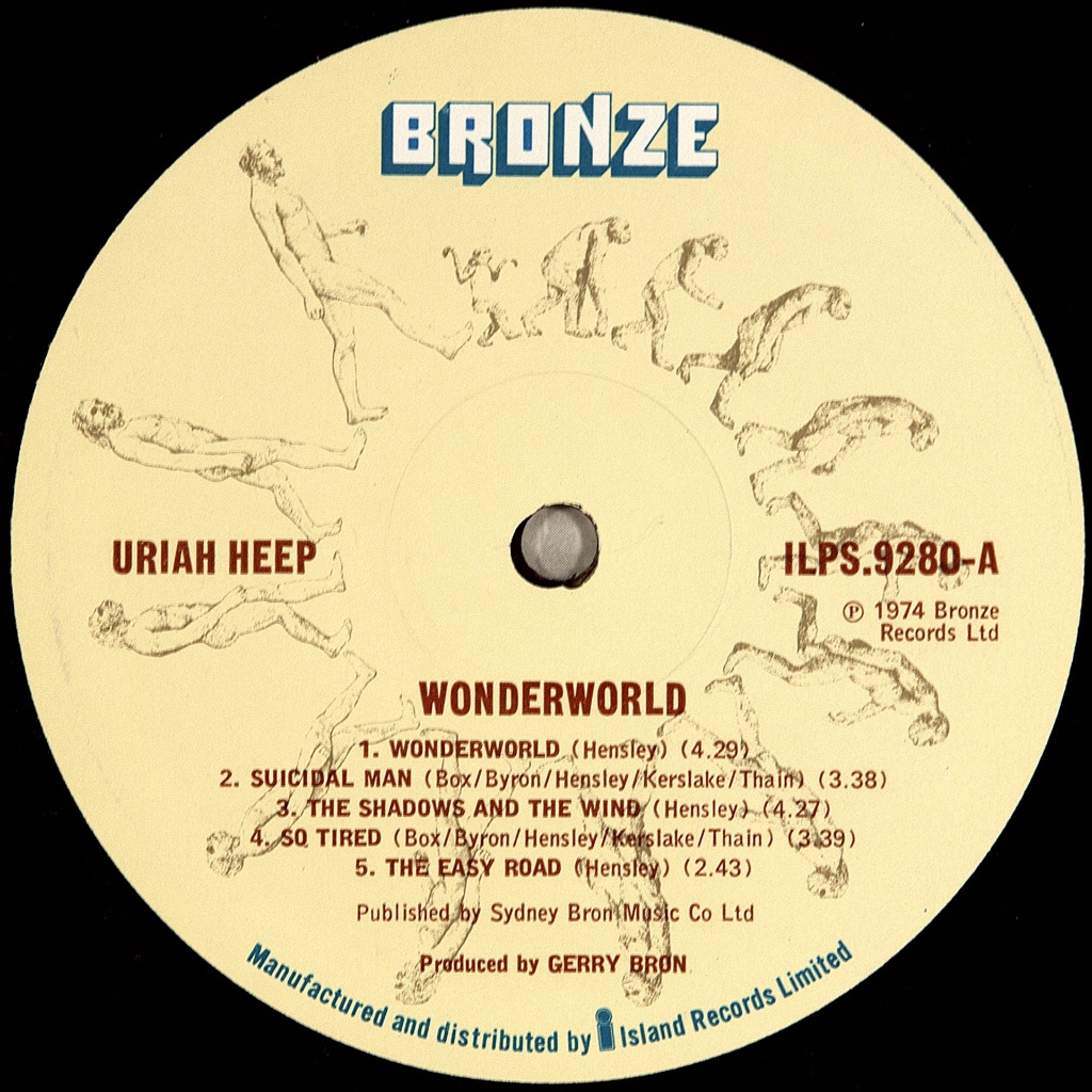 URIAH HEEP-WONDERWORLD-1974-FIRST UK PRESS-BRONZE number ILPS9280. Rare British original icon hard rock style .