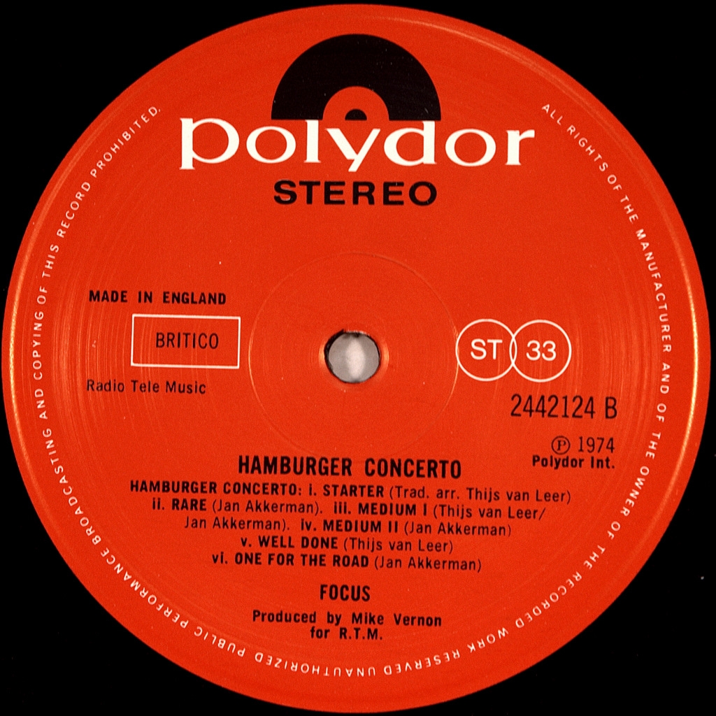 FOCUS-HAMBURGER CONCERTO-1974-FIRST UK PRESS-POLYDOR-24421241. Of The Matrix A-1/B-1. Rare British original most popular album of the Dutch rock group Focus.