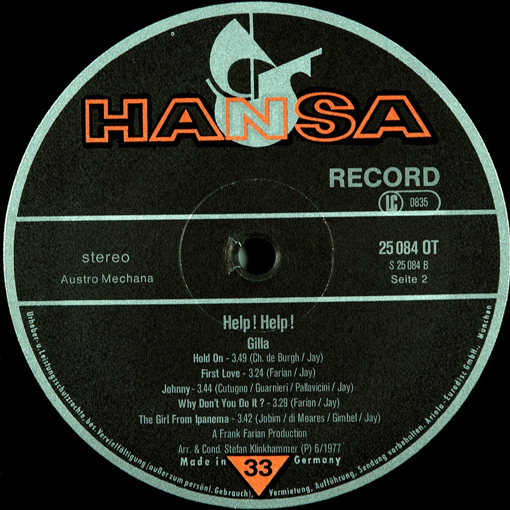 GILLA-HELP! HELP!-1977-first germany press-hansa-25004OT. Very rare German original disco album.