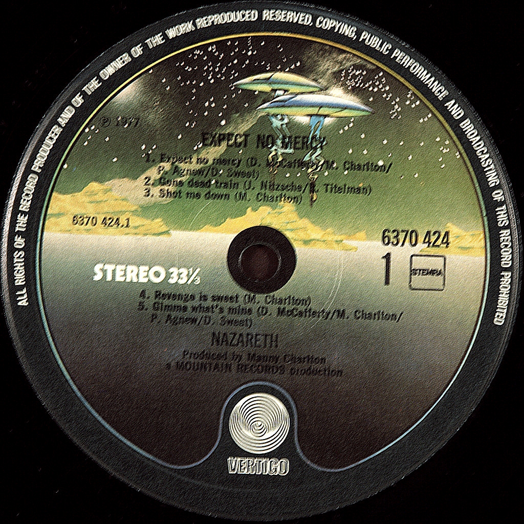 NAZARETH-EXPECT NO MERCY-1977-FIRST HOLLAND PRESS-VERTIGO - 6370424. Rare European original. Expect No Mercy is the ninth Studio album by the Scottish rock band. The album is considered to be a significant shift of Nazareth, the music, the so-called AOR.