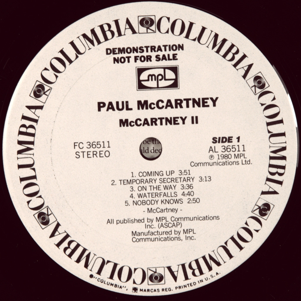 MCCARTNEY, PAUL-II+45s COMING UP (LIVE AT GLASGOW)-1980-FIRST PRESS(PROMO) USA-COLUMBIA- number FC36511