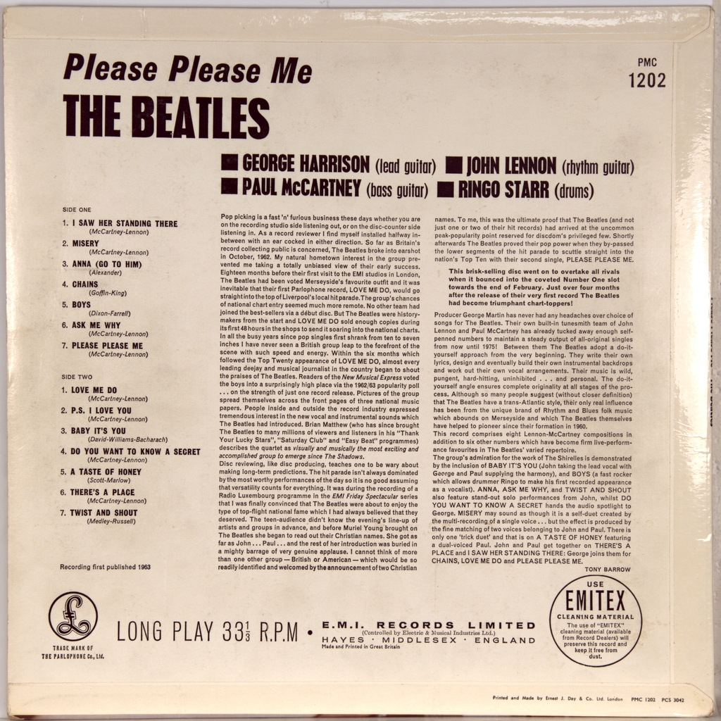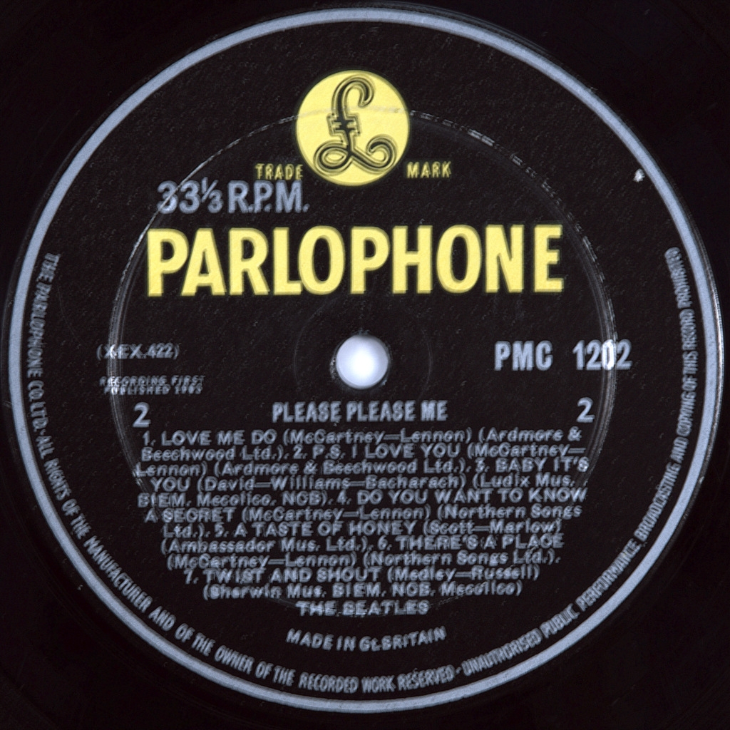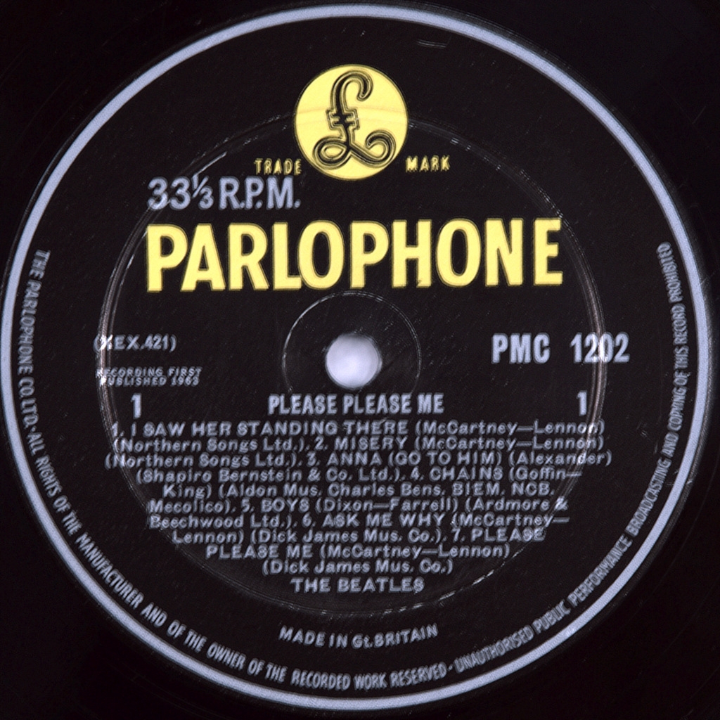 BEATLES-PLEASE PLEASE ME-1963-FIRST PRESSING(DECCA PRESS) UK-PARLOPHONE - PMC1202 . Matrix Side 1: XEX 421-1N; Side 2: XEX 422-1N.Contract press in the factory DECCA, summer-autumn 1963. Garrod & Lofthouse Ltd. Front laminated cover, with large “mono” on the front panel. Black label with yellow logo and silver print. “The Parlophone Co. Ltd." printed at the start perimeter print and "Recording first published 1963" label and first published 1963. Tracing-on the tab “Use Emitex”“use Emitex”