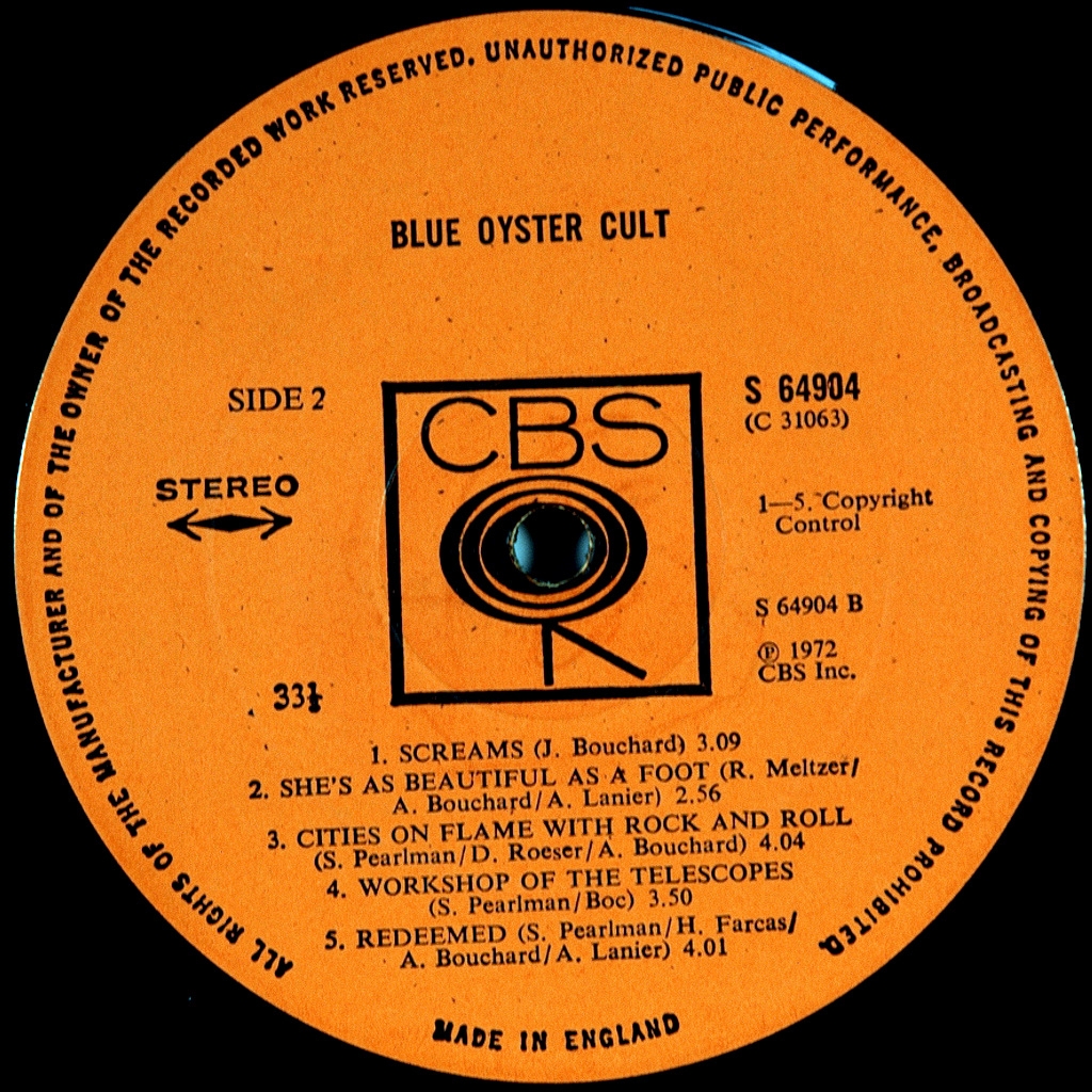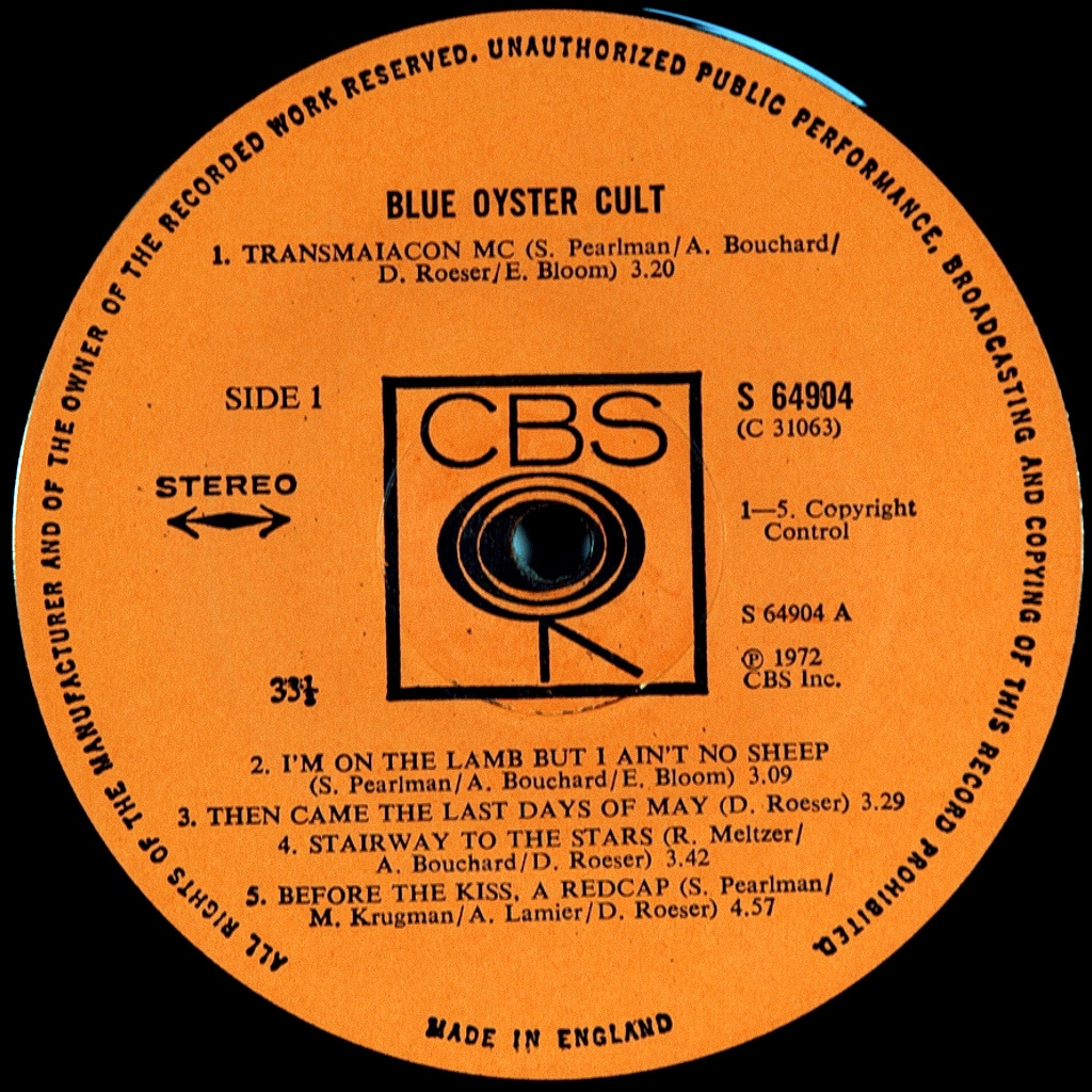 BLUE OYSTER CULT - SAME-1972-FIRST UK PRESS-CBS-S64904. Very rare British original American hard-Blues band.